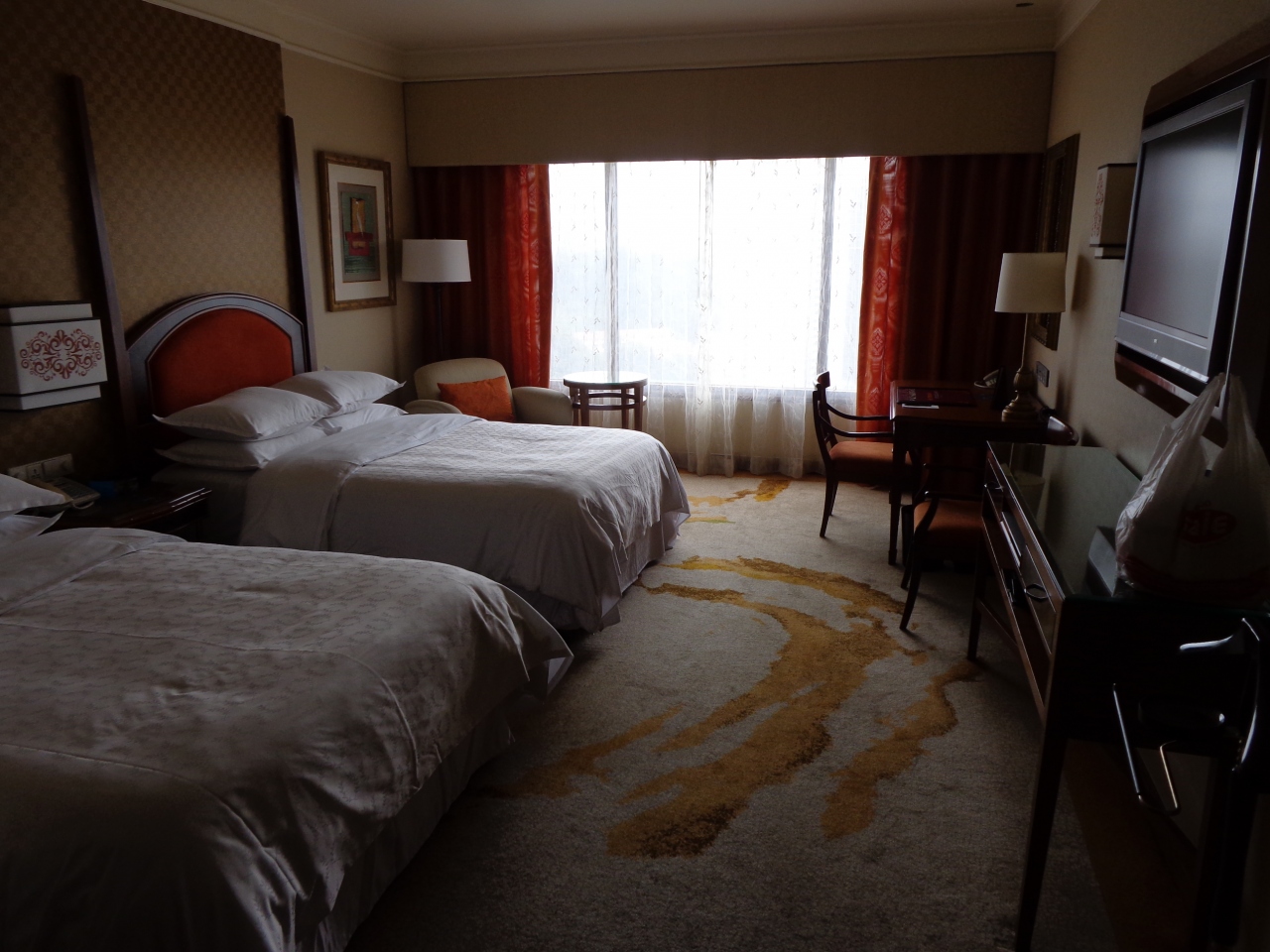 客室は28階で、KLタワーの方を一望できました。部屋はデラックスルームで、ベッドが2つあっても広々としていました。