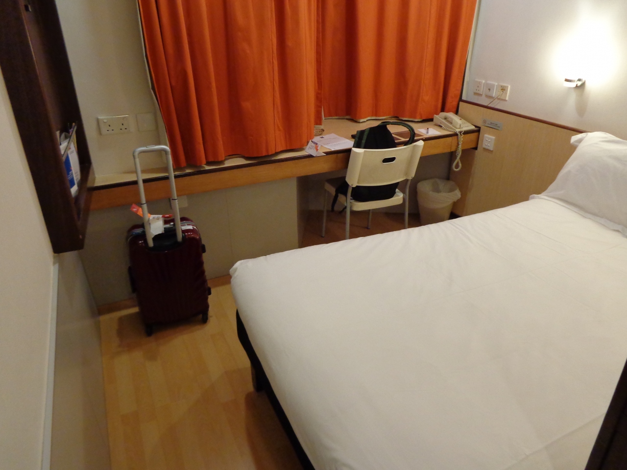 客室は一人で過ごすには十分な広さでした。大きめのスーツケースを広げるには厳しいかと思います。