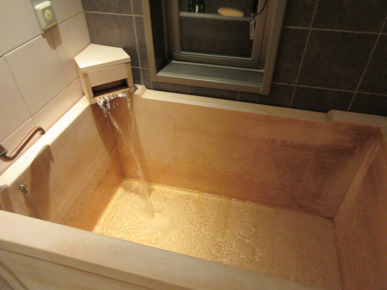 2階に大浴場があり、夜はキャンディー、朝は乳酸菌飲料のサービスがあります。今回泊まった部屋にも天然温泉を使った檜風呂がありましたので、両方楽しむことができました。