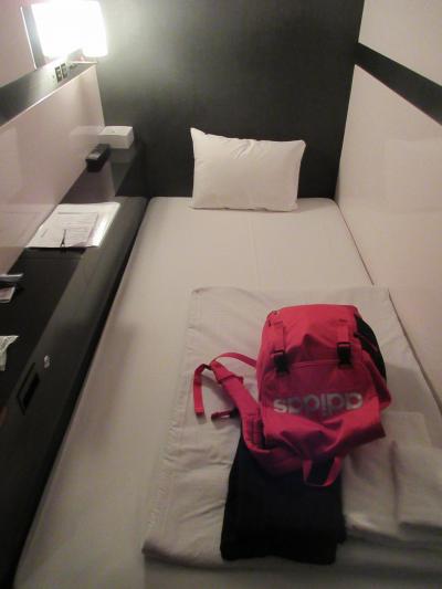 部屋はツインルームを利用。部屋の広さは「ベッドの上以外でスーツケースを広げるには、玄関先しかないくらい」でした。機内持ち込み可能なサイズでこれでしたので、それより大型のスーツケースは難しい気がします。