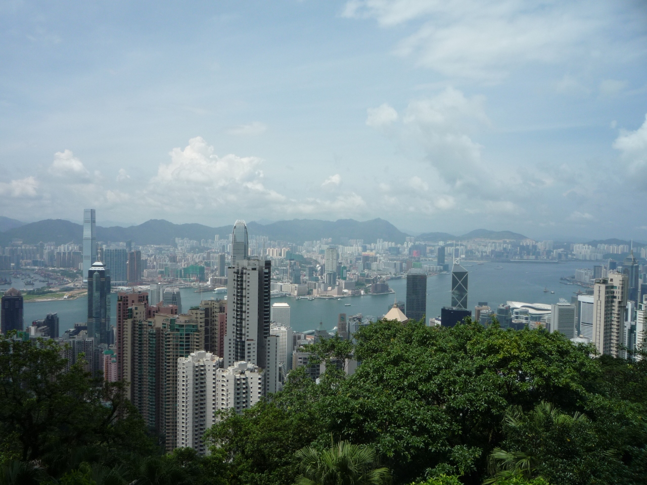 山頂のバスターミナルから5分ほど歩くと、市街を一望できるスポットに着きます。ちょうど北の方角をみるため、香港の高層ビル群を一望できます。