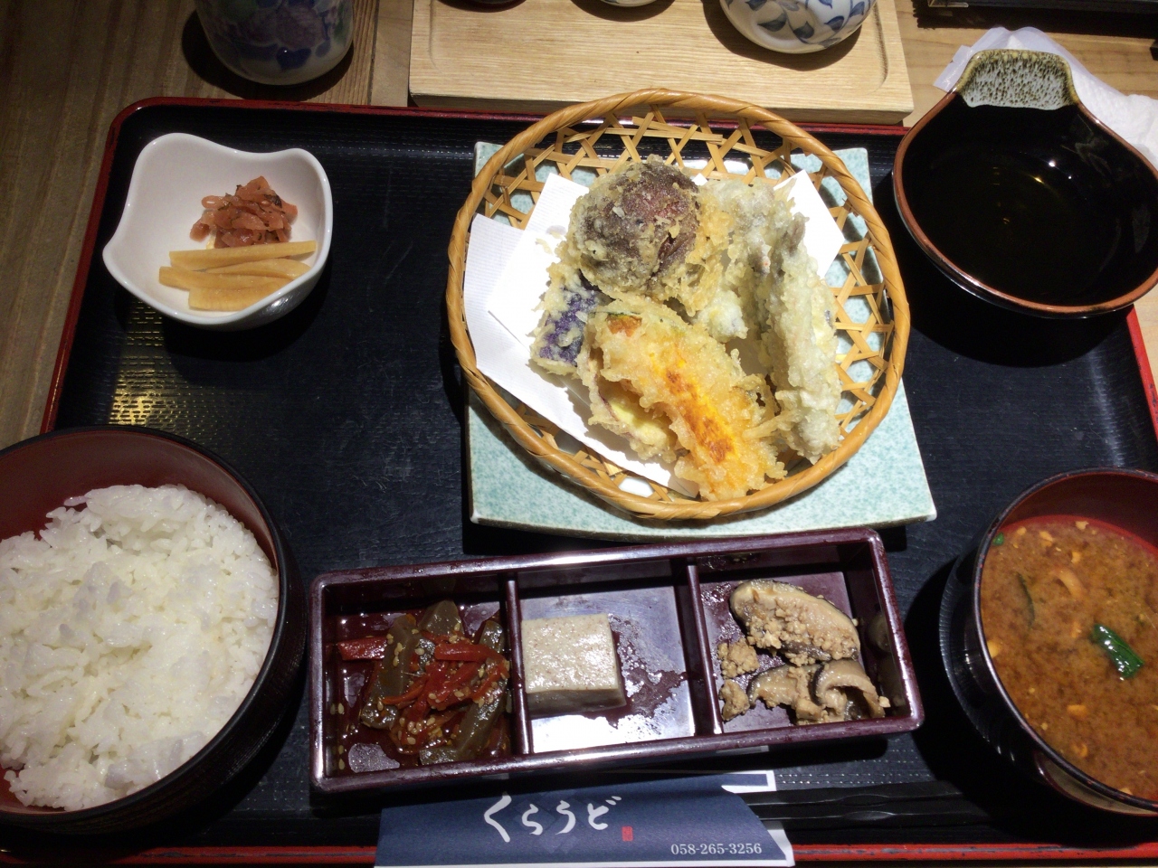 メニューの中に、春のスペシャルメニューで「あまご定食」というものがあり、それをオーダーしました。あまごは小魚で、イワシよりも小さいかんじでした。あまごと野菜、椎茸の天ぷらに小鉢、ご飯、みそ汁がセットになっていました。