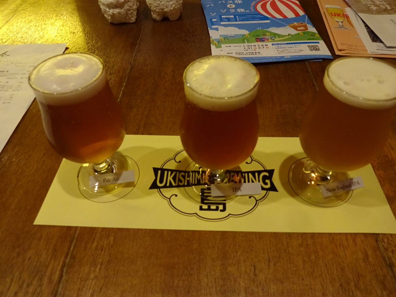 メニューの中から3種選んで飲み比べできるセットをオーダー。それぞれ個性的な味わいがあり、ビールだけでも楽しむことができました。