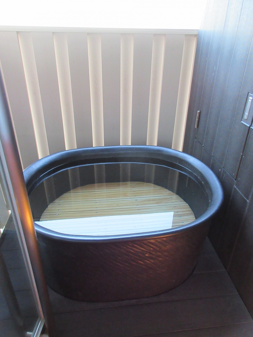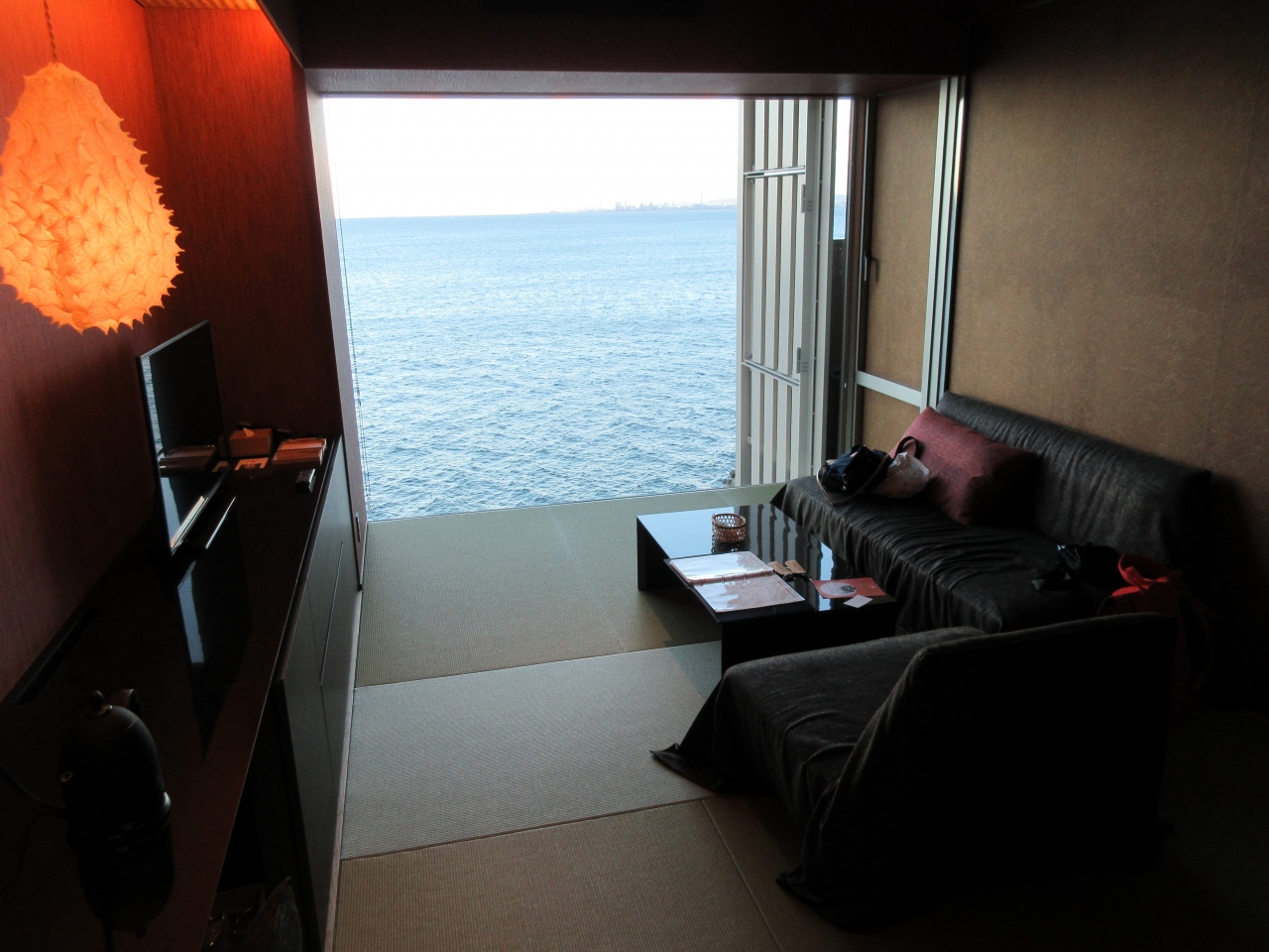 今回泊まった部屋は、ベッドと小上がりがあり、小上がり部分には布団を敷いて寝ることもできました。バスルームは一般的なビジネスホテル並みの広さでした。