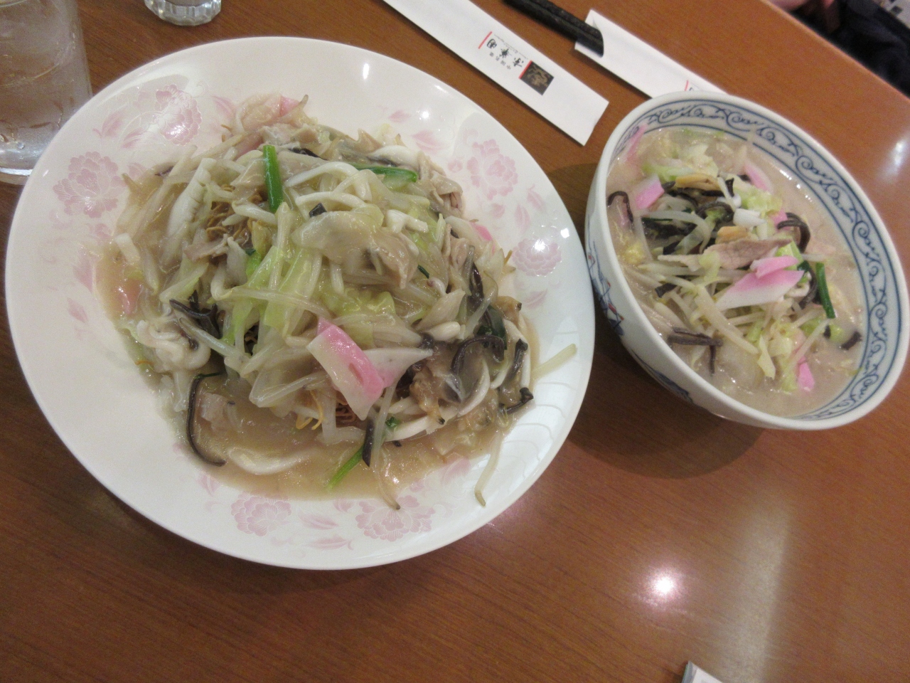 2名で入りましたので、皿うどんとちゃんぽんを1皿ずつオーダーしてシェアしました。皿うどんの方は、海鮮の風味がし、ちゃんぽんの方はごま油の香ばしい香りがしました。ボリュームはどちらも1人前としては妥当な量に思えました。