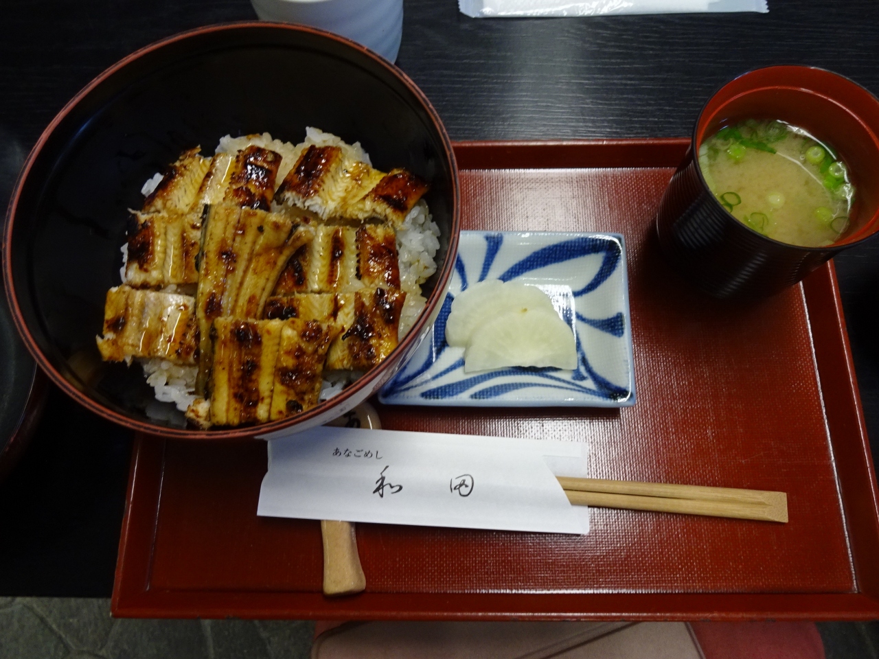 どんぶりにびっしりあなごが載っていました。個人的にタレがちょっと甘すぎたかなと思いました。