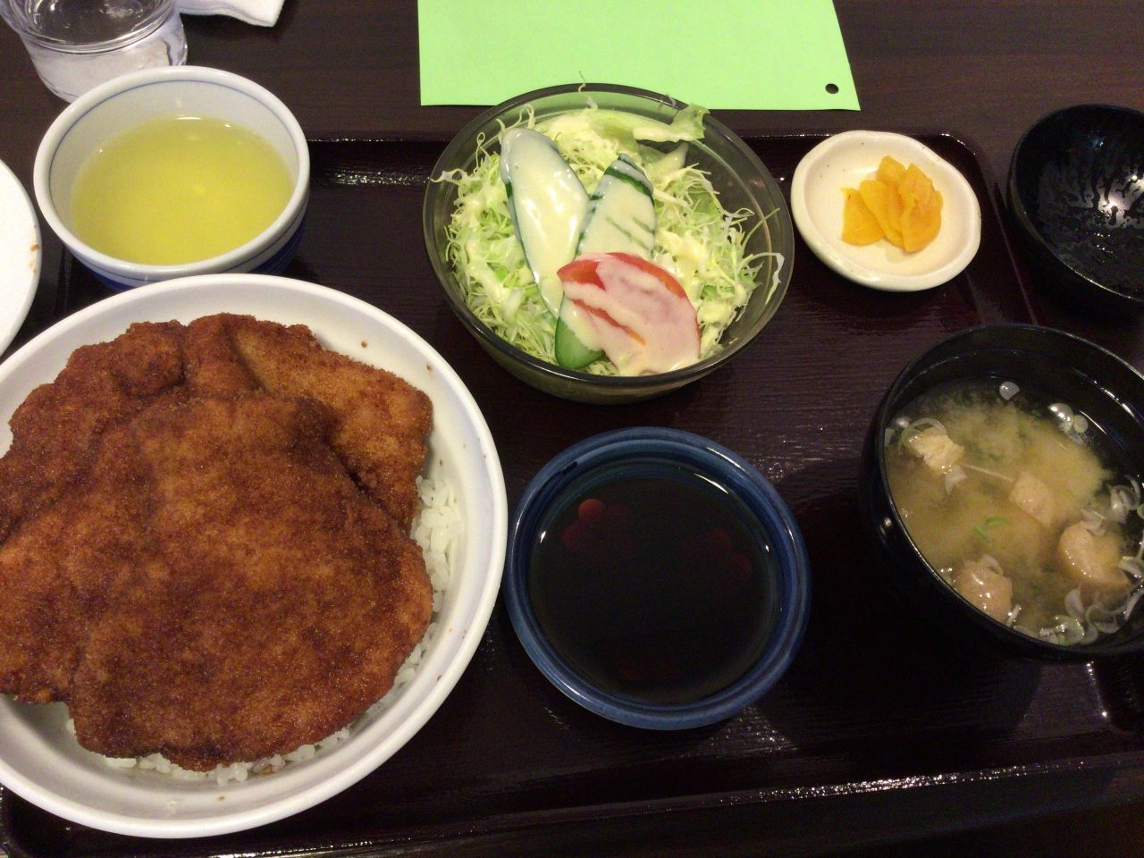 ソースカツ丼のお椀は、蓋が少し閉まり切れていないサイズ。あまり油っこい感じはしませんでした。なおここのお店では、小皿に追加用のソースが付けられていました。- 旅行時期