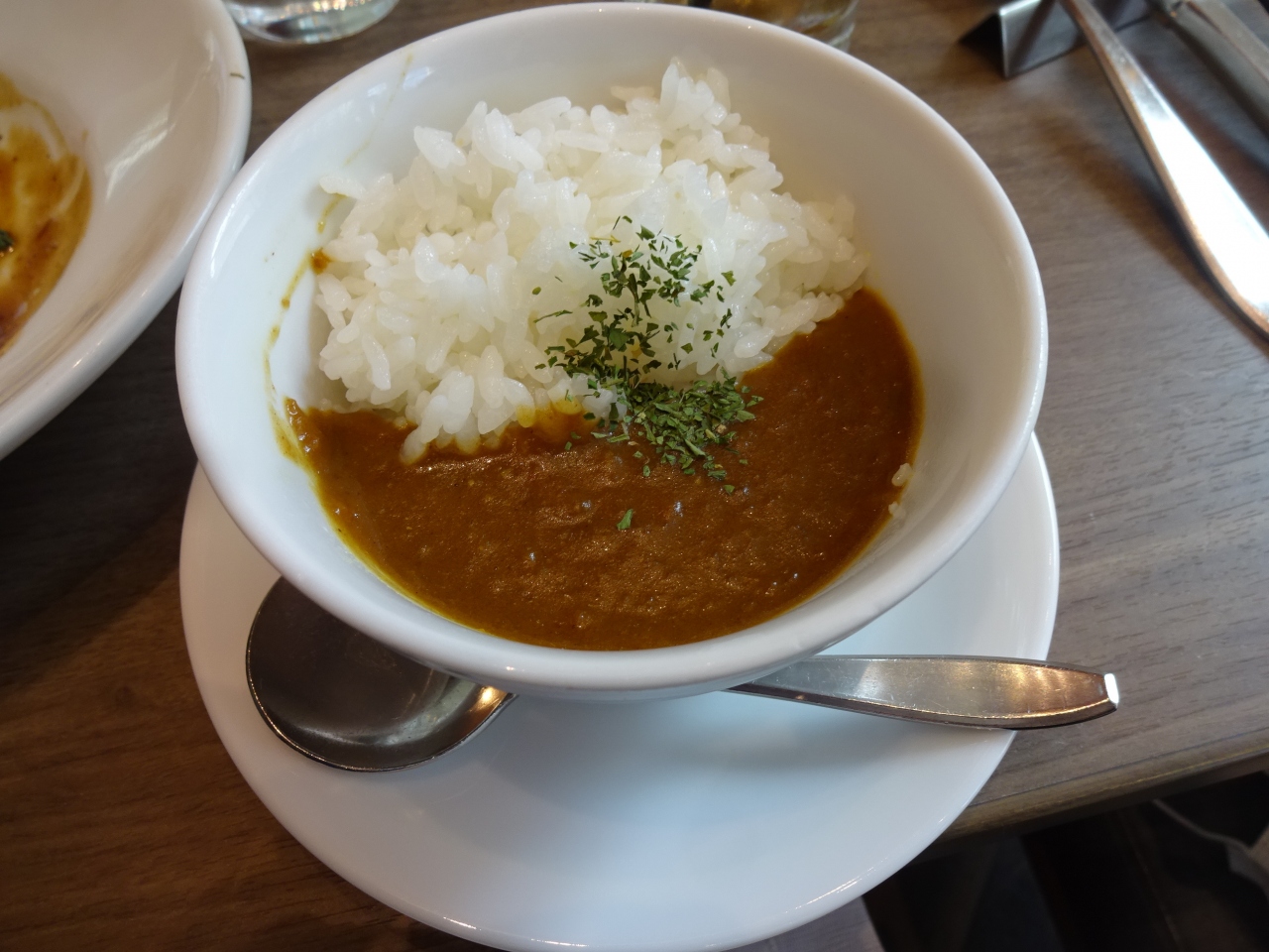 また、カレーがお椀サイズでスパイスが病みつきになり、ついついお代わりしてしまいました。