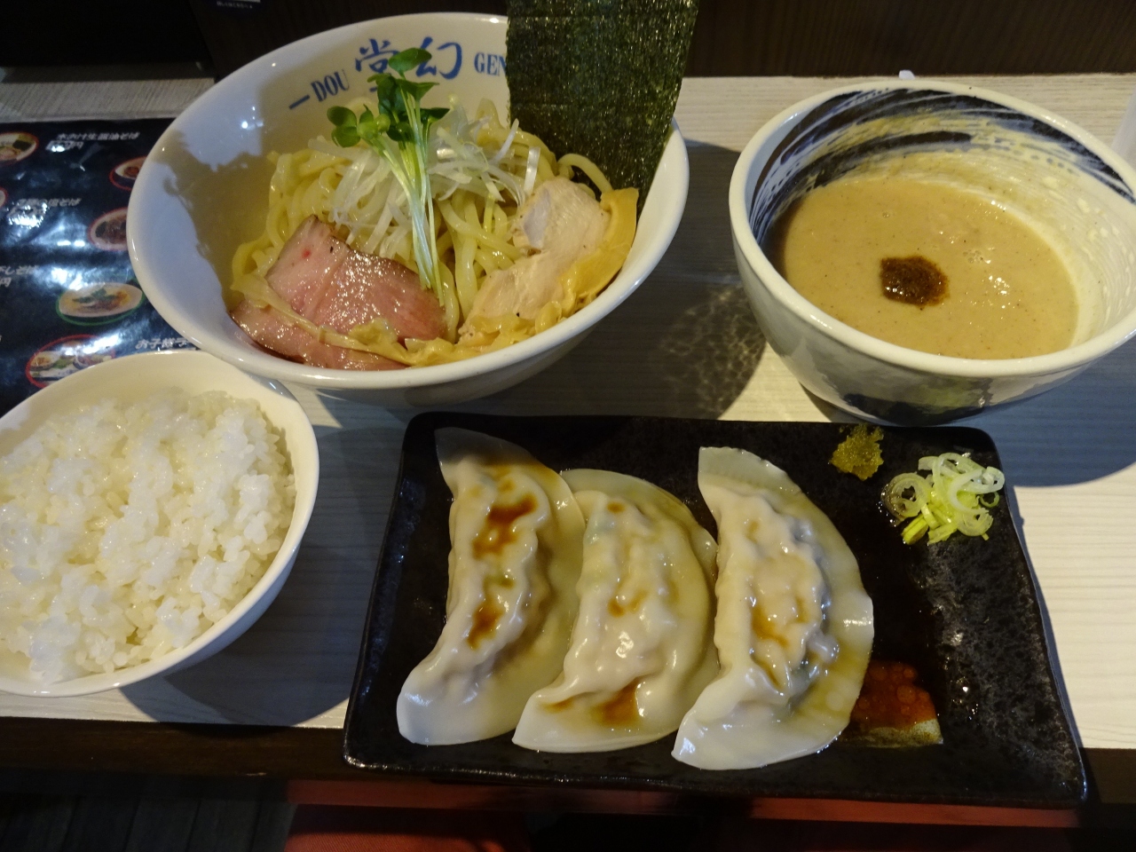 コースメニューは、好きなラーメン(つけ麺含む)1杯と水餃子(3個入り)とライスがセットになったものでした。この時は濃厚鶏魚介つけそばを選びました。つけ汁は少し甘めでした。好みが分かれそうな味のように感じました。また、麺はあまりほぐれていない感じで、少々取り出しにくかったです。