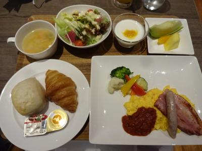 朝食は、洋書の場合のみクラブラウンジで食べられます。和食の場合は7階のレストランとなります。メニューは、パンとホットミールとコールドミールが配膳されたプレートが各1枚と4種類の卵料理から1つ選ぶ物でした。