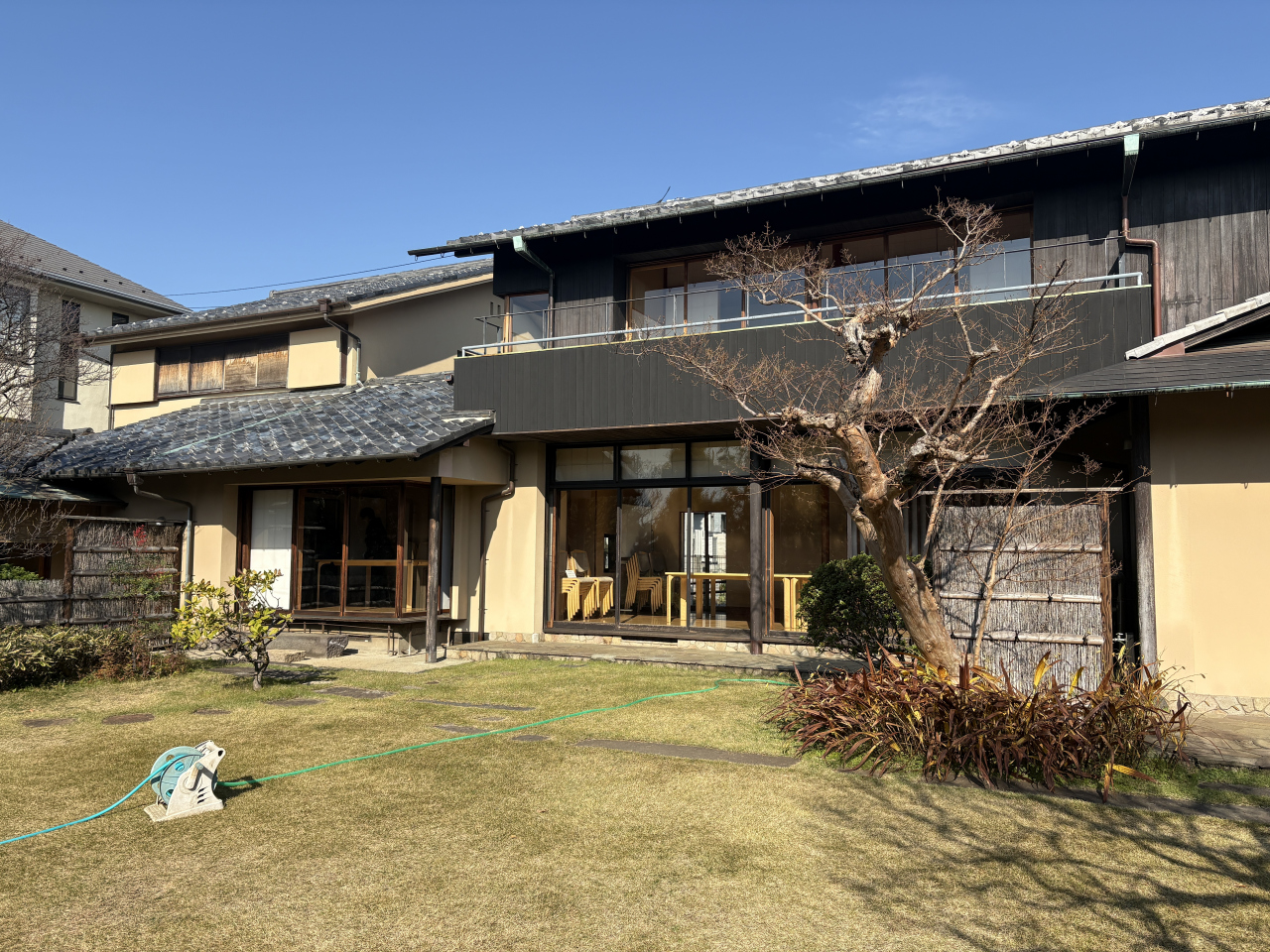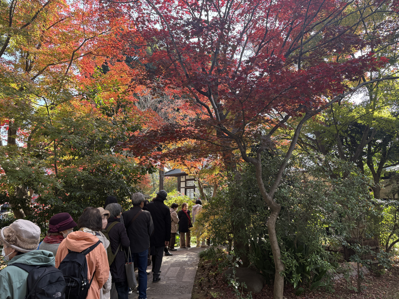 荻窪三庭園の一つで、大正天皇の侍医頭・入澤達吉氏の別荘として建てられ、その後、首相を3度務めた近衛文麿氏が移り住んだ住宅が残っています。近衛氏が生活した客間や服毒自殺した書斎、食堂などを見学できることもあり、紅葉の美しい大田黒公園を訪れた際に立ち寄ったところ、平日だったにもかかわらず大変混んでいて、建物内に入るのに1時間待ちでした。庭の赤く色づいた木々や建物に使われている特徴あるガラス窓、公園隣の芝生広場から眺めた住宅の全景など、首相の住宅らしい落ち着きが感じられました。公園隣にはカフェを備えた荻外荘展示棟があり、大田黒公園や入澤達吉についての説明や展示物を見ることができました。