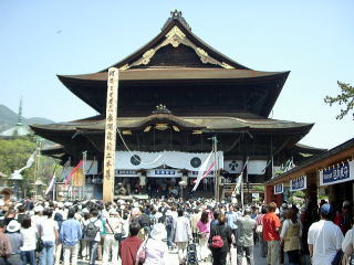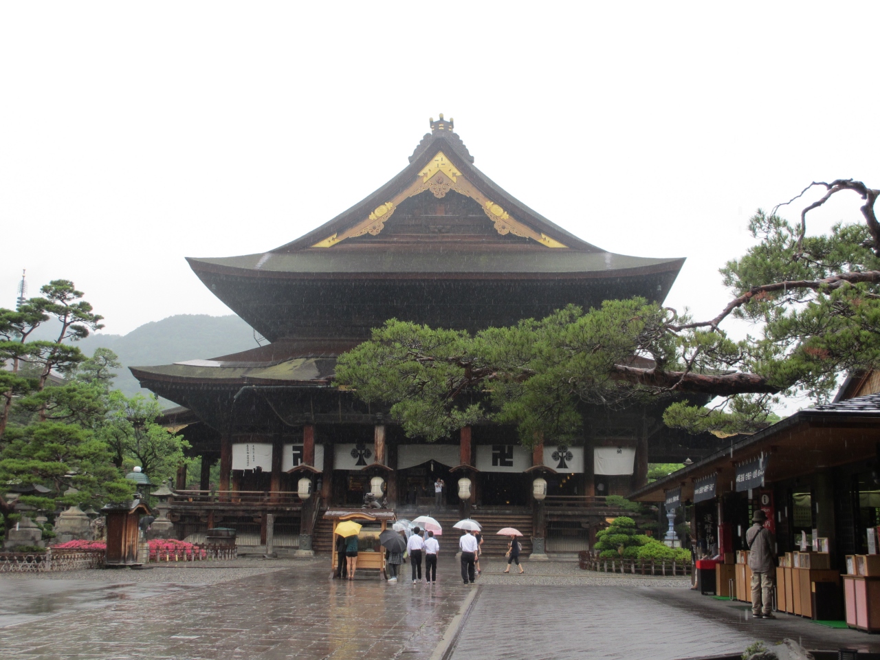 雨模様のオフシーズン午前の参道は空いてました。参道沿いの店で試食とお茶をいただき店主さんと話したり、善光寺境内をのんびり歩いたりしました。以前御開帳の時期に訪れたときは駐車場も参道も境内も混んでいて疲れましたが、今回は静かでよかったです。