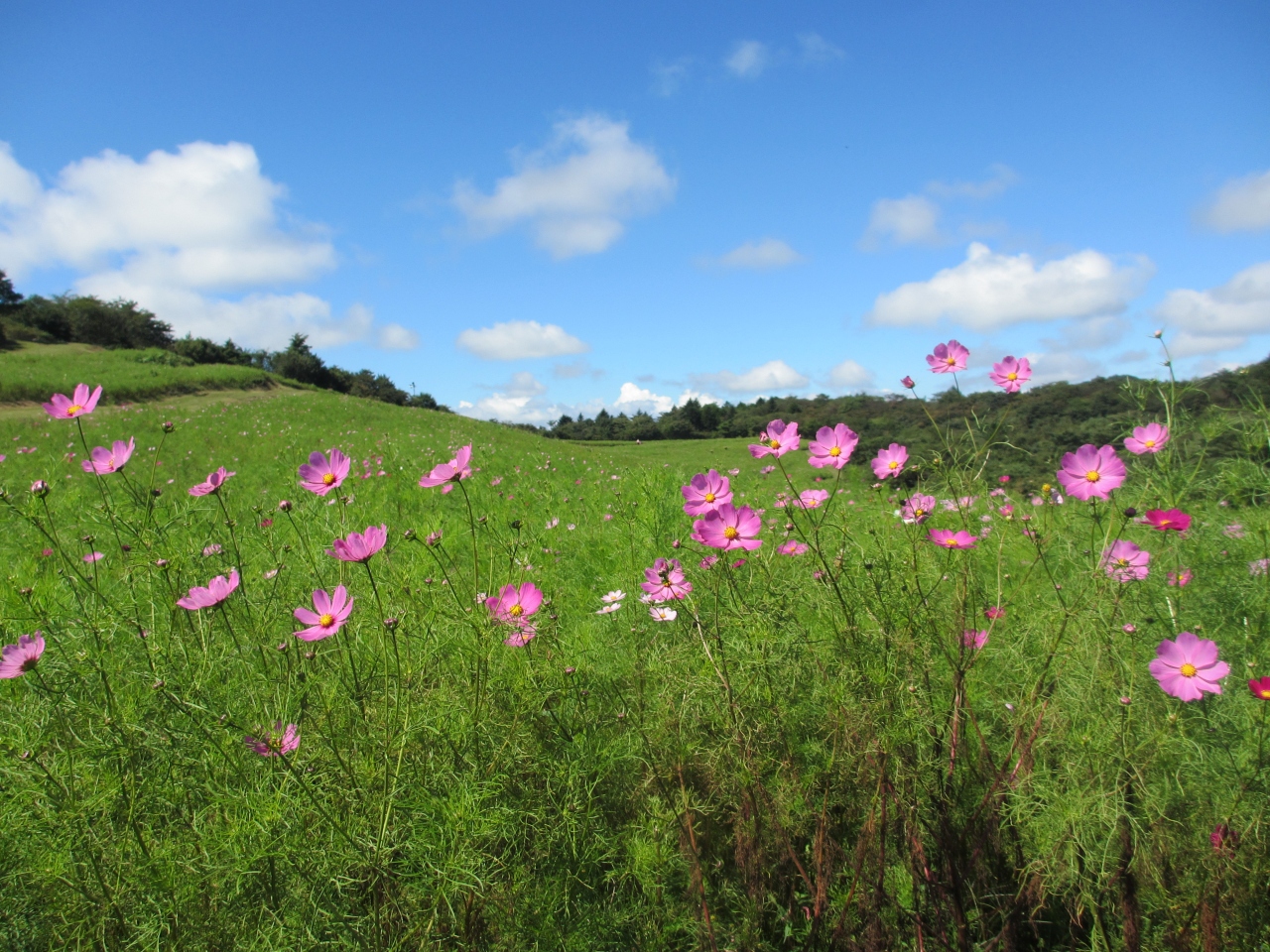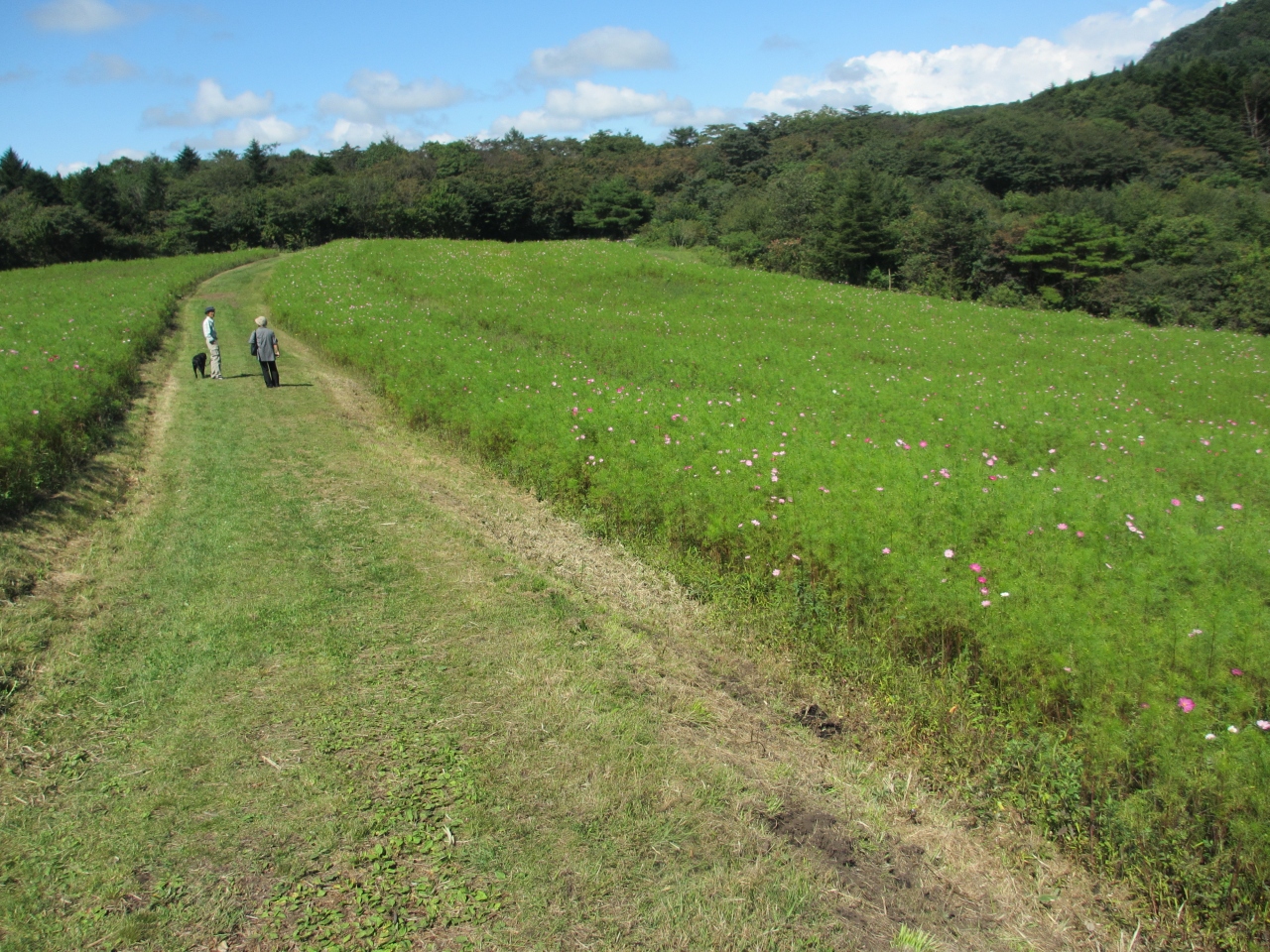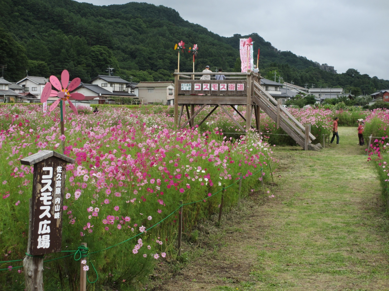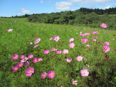 佐久市街から車で30分ほど上るとコスモスやハクサンフウロが美しい内山牧場に出ます。10万株のコスモスが咲くコスモス畑は、展望台もあり迫力満点です。一周600mほどの遊歩道も整備され歩きやすくなっています。初夏のレンゲツツジも美しいようです。私たちが訪れたときは3分咲きでした。訪れる前に満開の時期をキャンプ場に確認したほうがいいと思います。