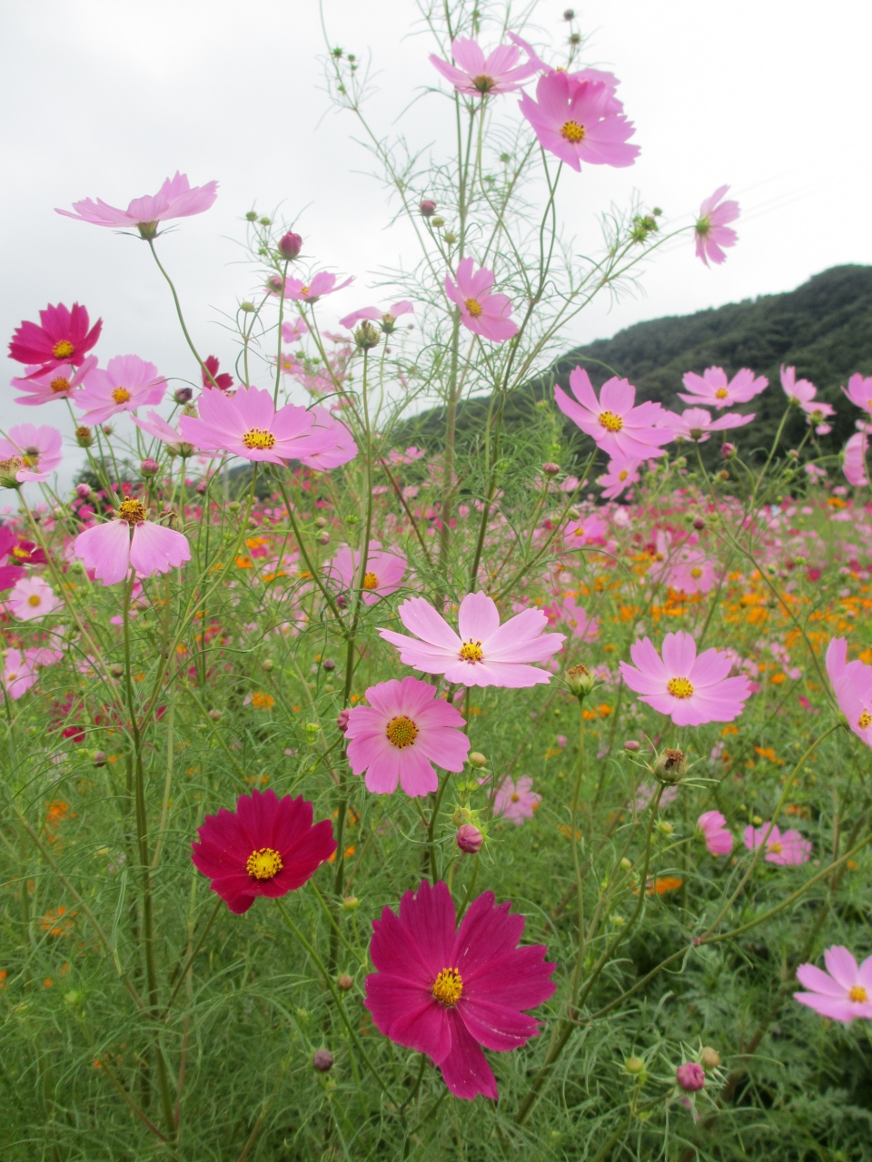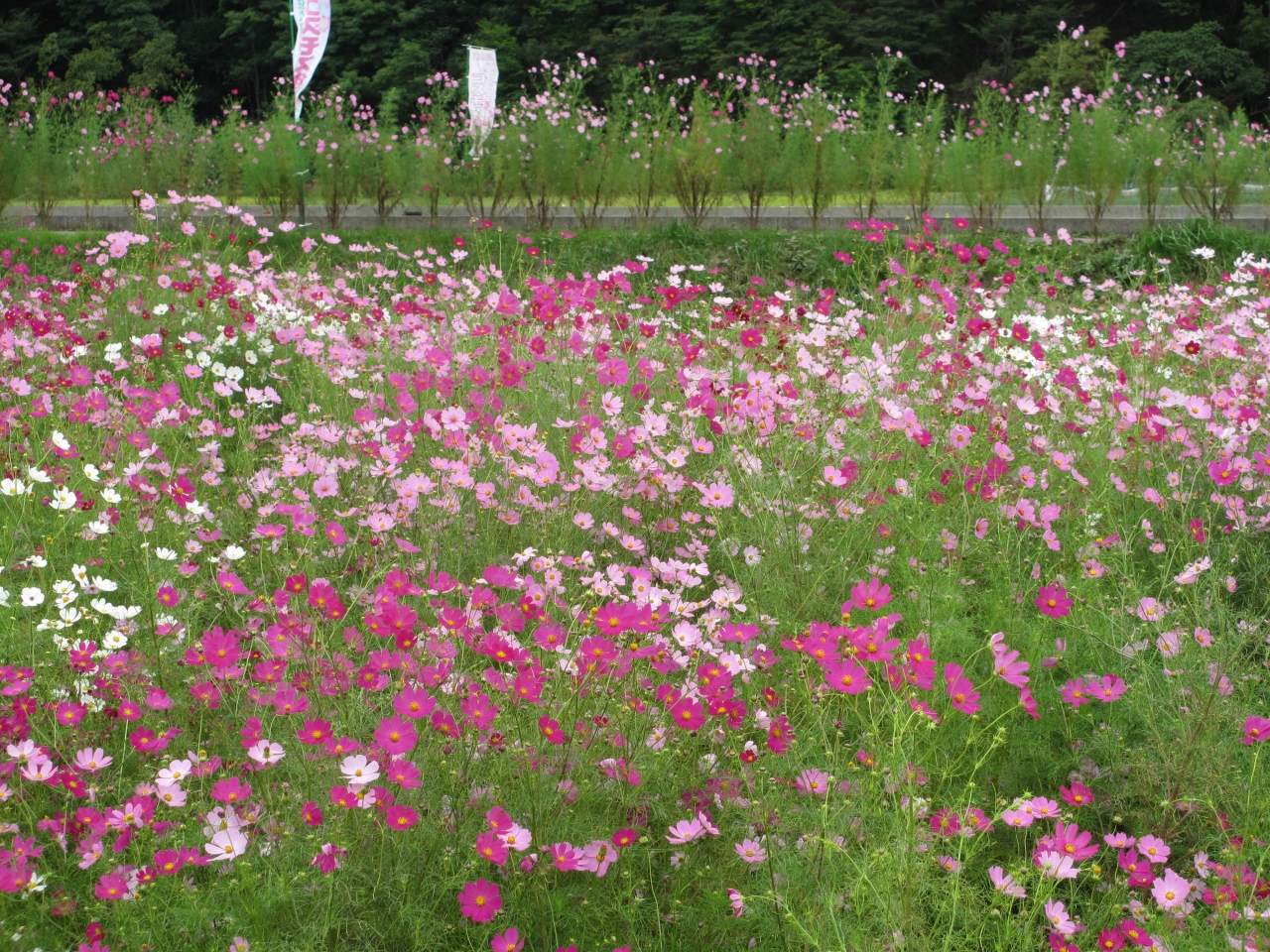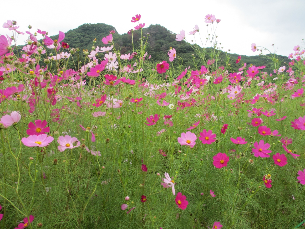 佐久市街から車で30分ほど上るとコスモスやハクサンフウロが美しい内山牧場に出ます。10万株のコスモスが咲くコスモス畑は、展望台もあり迫力満点です。一周600mほどの遊歩道も整備され歩きやすくなっています。初夏のレンゲツツジも美しいようです。私たちが訪れたときは3分咲きでした。訪れる前に満開の時期をキャンプ場に確認したほうがいいと思います。