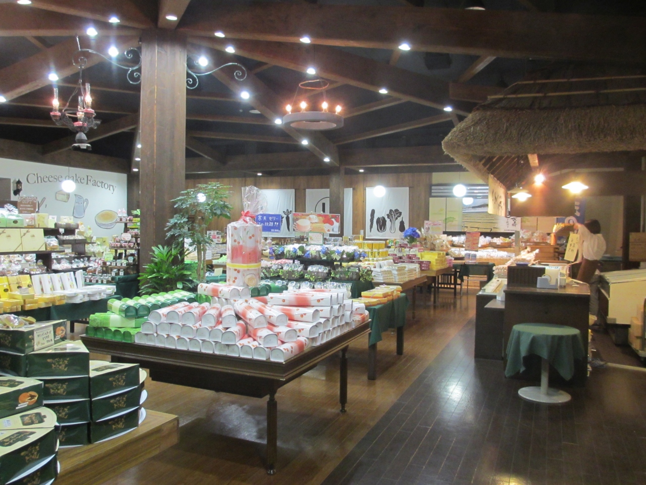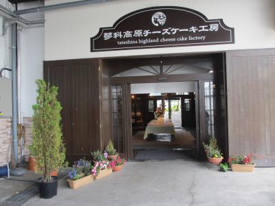 チーズケーキの看板が目立つ駐車場に入るとそこは隣の「たまごとミルクとりんごの樹」でした。チーズケーキ工房は茅野市街地寄りの駐車場から入ります。入口に寒天ゼリー試食コーナーがあり、大型バス観光客に対応できるスペースでした。名物のチーズケーキは濃厚でフワッとして美味しいですが、賞味期限が短いです。カップに入った生ちーずけーきはゼリーに近いものでやはり濃厚です。自社製品と他社の土産物が取り揃えてあり甘い物の土産が買えます。