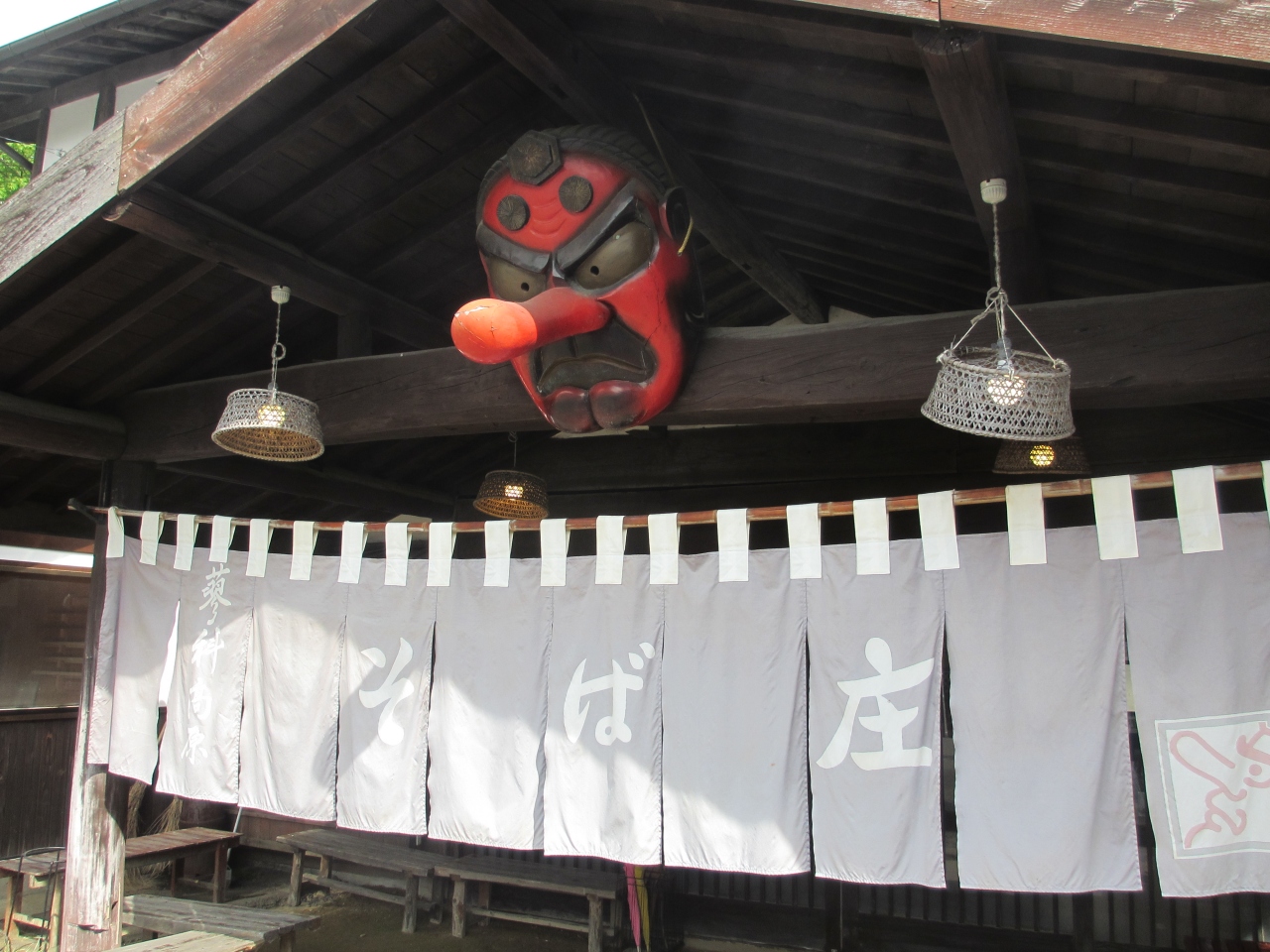 ビーナスラインで蓼科湖を過ぎたすぐのところにあるそば屋さんです。古民家風の建物と、正面に大きな天狗の面が飾られています。フジの季節にはきれいな富士が咲きそろいます。お蕎麦もおいしいのですが、ここのおすすめは何と言ってもおやきです。5種類ほどあるおやきはどれも具がたくさん入り、外の皮ももちもちしていて甘いです。蓼科湖で遊びすぎ、昼を食べ損ねたりした場合、テイクアウトもできるので便利です。もちろんおやつにも最適ですよ。広い駐車場もあります。