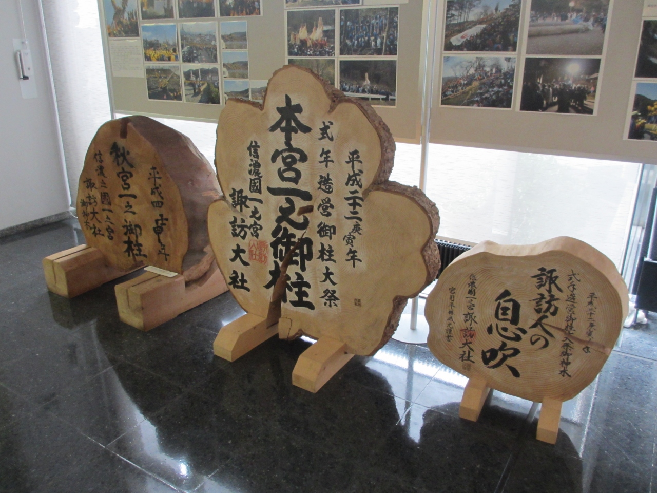 道路わきに目立たないように建っている史料館です。車が三台ほど停められるスペースも用意されています。車を止め、畑の中を歩いていくと史料館に到着します。中には古代から明治時代まで諏訪上社の神長官を勤めてきた守矢家の資料や鹿の剥製が展示されています。短時間で見られる史料館です。裏手には円盤のような形をした美術作品も展示されています。