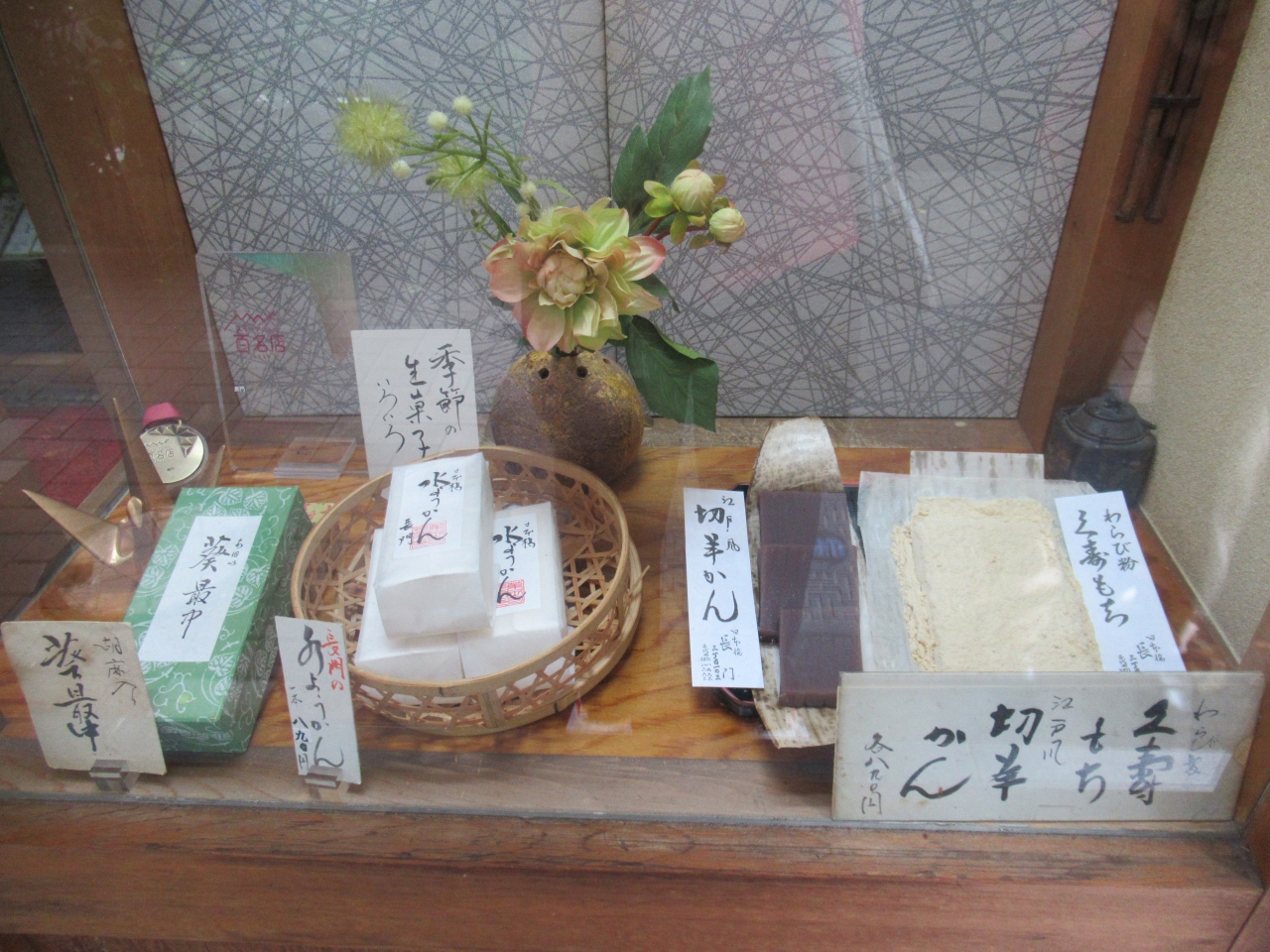 日本橋高島屋近くのさくら通りに面した老舗和菓子店です。徳川吉宗の時代の創業で、徳川将軍献上菓子を作っていた店です。狭い店内に銘菓久寿もち、切羊羹、水羊羹、生菓子などがありました。そら豆、びわ、あじさいなどきれいな生菓子は美味しそうでしたが、久寿もちを買いました。わらび粉で作った柔らかい生地にきな粉がかかっている上品な甘さと食感が特徴です。平日午前10時ごろ、次々と客が入っていきました。江戸時代から変わらない献上菓子松風の味が気になりましたが、予約順番待ちのようでした。また久寿もちを買いに出かけたいくらい美味しかったです。
