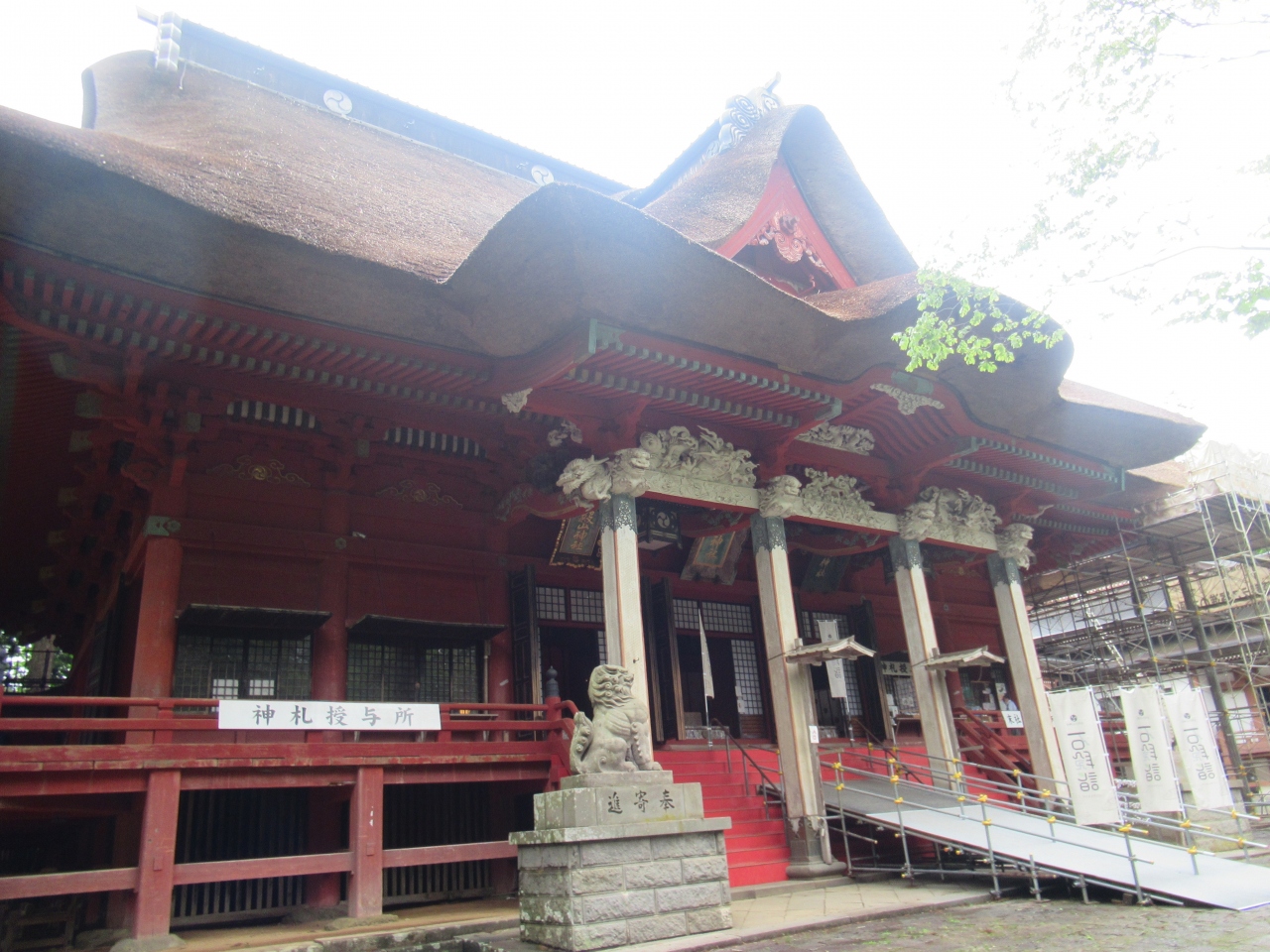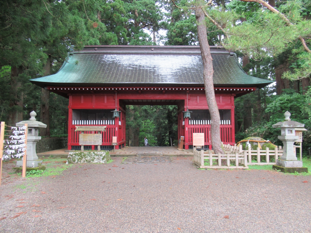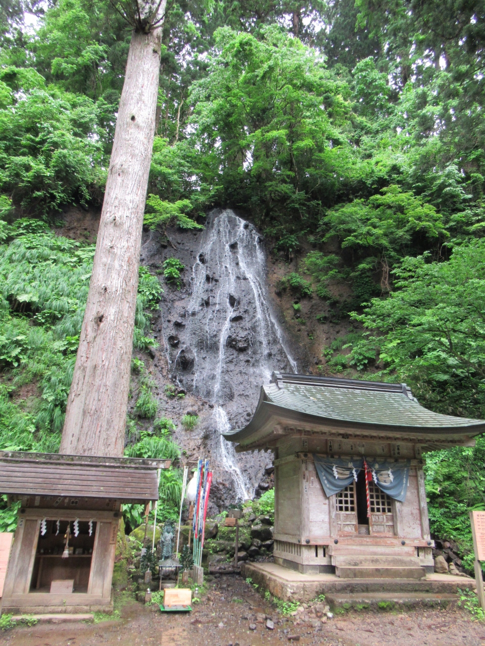 羽黒山山頂に建つ、羽黒山、月山、湯殿山の三神を祀る神社です。神仏習合時代の名残を留める造りで、厚さ2mほどの茅葺屋根が特徴の、重要文化財に指定されている建物です。すぐ近くには重要文化財に指定された、1618年に再建された茅葺屋根の鐘楼と、1275年という刻銘が入った梵鐘も建っています。どちらも汗だくになりながら、随神門から2446段の階段を上ったところに建っていることもあり、参拝できるありがたさを感じつつ、月山から引いてきた手水舎の水で心身を清め参拝しました。