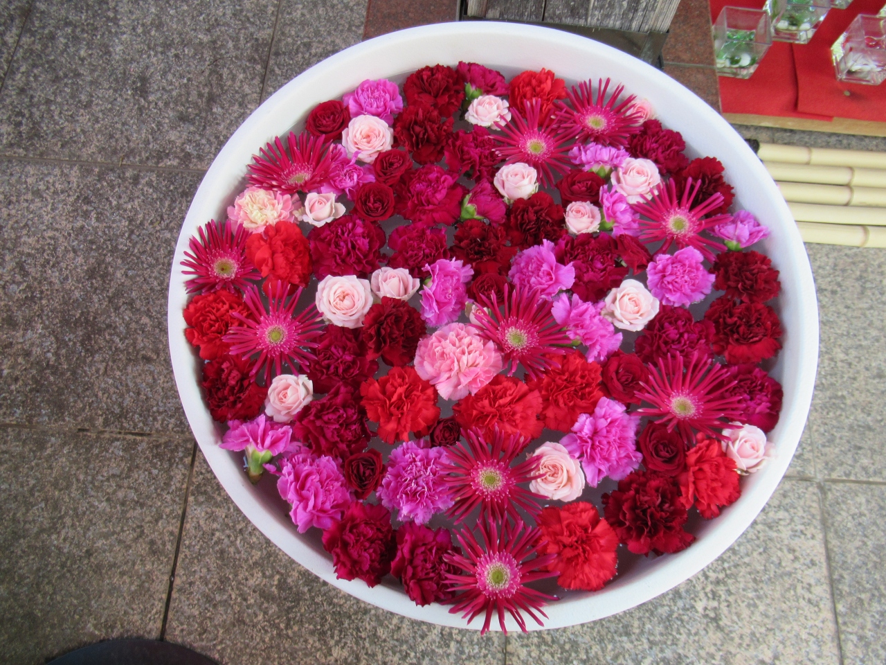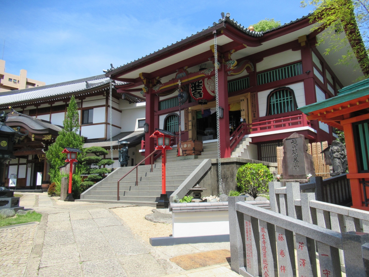 東西線早稲田駅から2分ほど、早稲田通りと諏訪通りが交わる馬場下町交差点そばに建つ日蓮宗の寺院です。階段上の木造の山門をくぐった先には、紅葉や枝垂れ桜、松、藤などの手入れが行き届いた草木が植えられています。手水舎には生花が浮かび、寺の随所に住職が入れ替えを行っている花手水が置かれ、参拝客を優しく出迎えてくれています。色々な御朱印があり、住職さんデザインの切り絵の御朱印や、月ごとに異なる花が描かれた御朱印、納経を書き入れた御朱印などをいただくことができます。庫裡の庭にもきれいな花が植えられていて、住職さんの草花を愛する気持ちが伝わっていました。