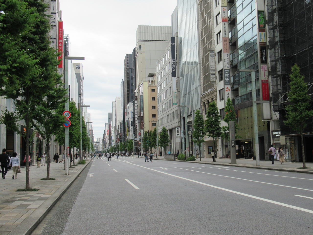 中央通りを日本橋から銀座まで久しぶりに散歩してきました。銀座、京橋、神田、秋葉原、上野などの商業地と繁華街を通る道路です。日曜日だったため、歩行者天国が実施されていて、普段歩くことができない道路の真ん中を歩くことができました。道沿いには日本の道路の起点となる日本国道路元標識や、江戸歌舞伎発祥の地碑、かつて日本橋に使用されていた親柱など歴史を感じる史跡がある一方、ブランドショップや銀座らしい100年以上の歴史がある老舗店が並んでいて、歩いているだけで活気が感じられました。