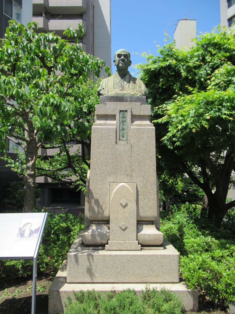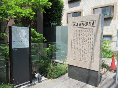 根津神社のつつじを観賞した帰りに立ち寄りました。神社の裏門から3分ほど、日本医科大付属病院横の道を入ったところに、説明が刻まれた大きな碑が建っています。漱石がイギリス留学から帰国後、3年10か月住んでいた、猫の家と呼ばれた家があったところで、碑のそばには2匹の猫の置物が置かれています。近代文学史上、貴重な史跡だと思いますが、目を向ける人はほとんどいませんでした。