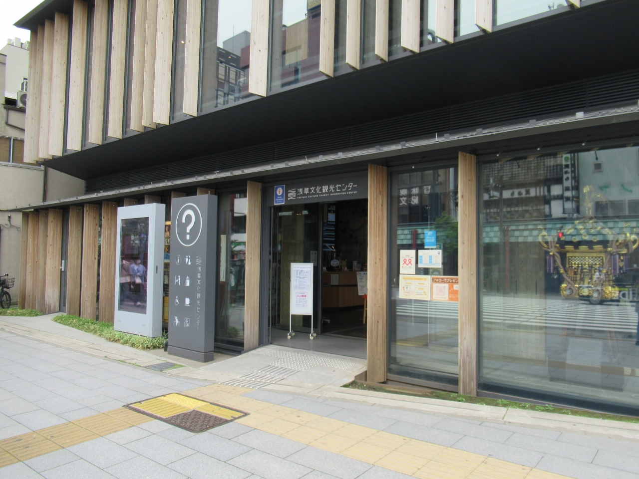 浅草雷門のはす向かいに建つビルにあります。訪れた平日午前、修学旅行生の何百人という団体が次々と仲見世に入っていき、久しぶりに活気ある仲見世とは対照的に人のいない静かな文化観光センターでした。仲見世の某店舗に行ったら、シャッターが閉まっていて、雷門店は営業中の貼り紙がありました。場所がわからず、文化観光センターに行って聞きました。1階の入口にスタッフが1名、案内カウンターに3名いて、調べてくれました。浅草観光案内図にマークを記入して、場所を教えてくれました。丁寧な応対と、分かりやすい説明でした。コロナ禍前に訪れた時は国内外の観光客が多く訪れていたので、静けさに驚きました。