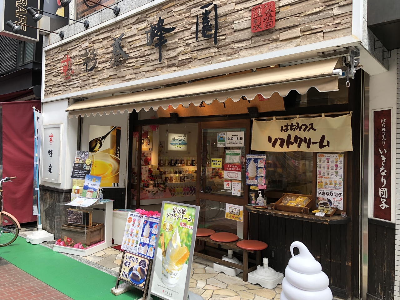 雷門周辺に5軒あるうちの1軒です。明治9年創業のスイートポテトや大学イモを販売している店で、川越にあったさつま芋問屋さんが始めました。スイートポテトはバターとミルクがたっぷり入っていて食べやすく、菜種油で揚げた大学イモは、蜜がたっぷり絡まれていて、どちらもさつま芋好きの方にはおすすめです。5軒ある店の中では、比較的観光客が少ない通りに建っていることもあり、並ばずに購入することができます。