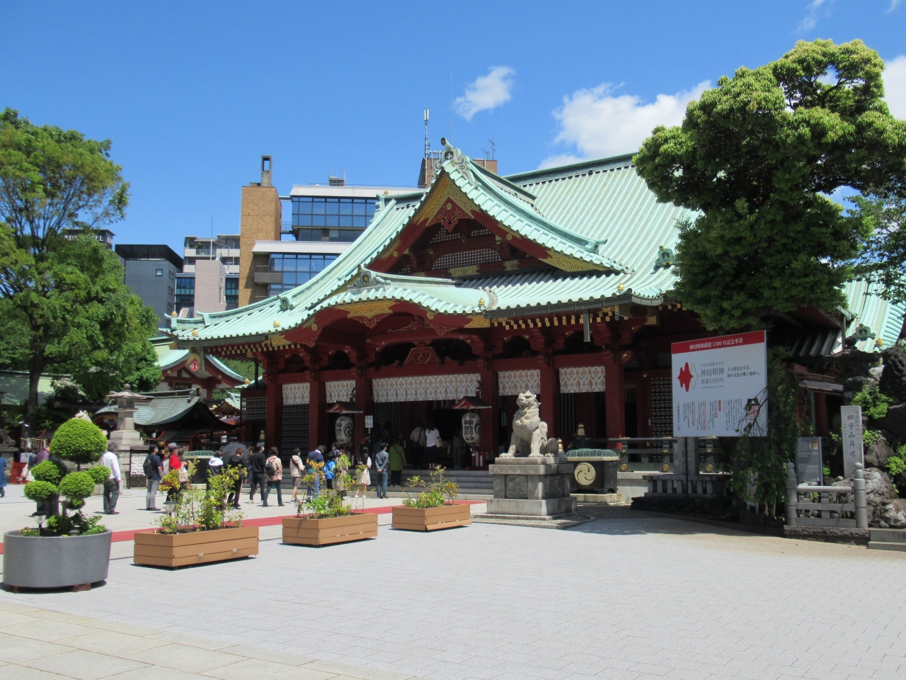 730年創建という大変歴史ある神社で、都心の108町会の総氏神として、2年に1度行われる神田祭でも知られています。表参道入口に建つ大きな鳥居、鳥居の先に建つ朱色に輝く堂々とした随神門、総漆朱塗、権現造りのどっしりした社殿、社殿の周りに鎮座するいくつもの摂社や史蹟、碑など、歴史ある神社にふさわしい建造物が点在しています。社殿横にはあかりちゃんと名付けられた神馬も飼育されています。拝殿前には参拝する人たちが列を作っていて、今もって多くの人に信仰されている神社であることが実感できました。