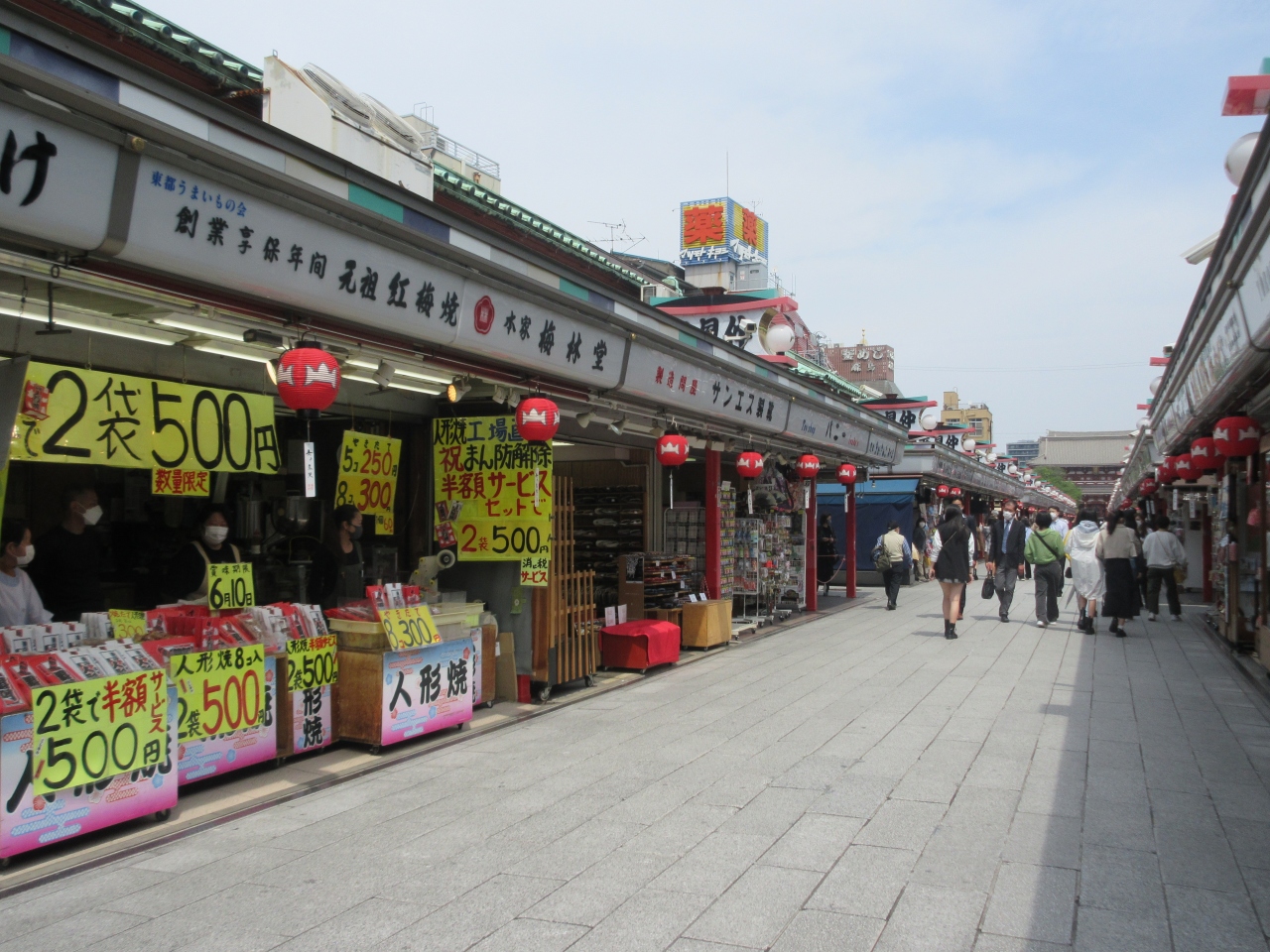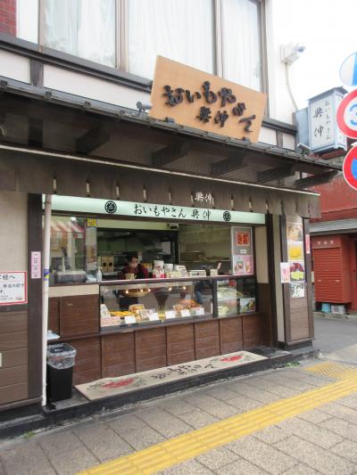 伝法院東通りに出店しているスイートポテトや大学芋、芋ようかん、マフィンなどを販売している店です。コロナ禍で食べ歩きはできませんが、食べ歩き用のカップに入った大学芋も売っていて、今は店の前で食べるようになっていました。浅草だけでも仲見世、新仲見世、オレンジ通り、伝法院通りに出店しています。世の中、さつま芋ブームなのか、若い女性が並んで購入している姿が印象的でした。