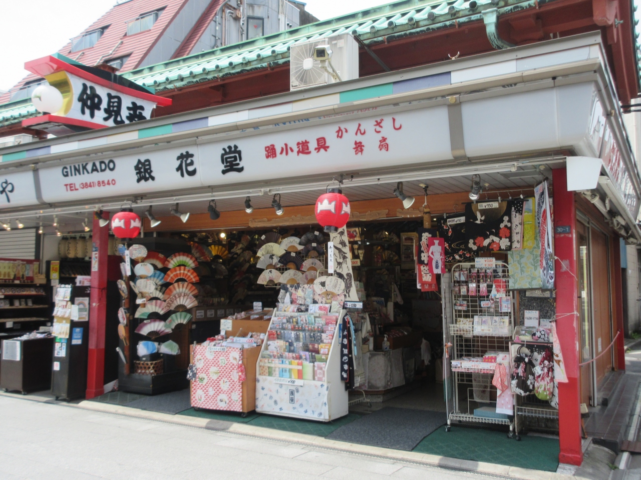 浅草仲見世沿いに建つ、かんざしやウィッグ、舞台用化粧品などを専門に販売している、大正14年創業の老舗店です。店内にはひょっとこやおかめのお面や、日本髪かつら、ウィッグケース、名入れ扇子、髪飾り、かんざし、帯飾り、ひげ、エクステなどが並んでいて、どこか浅草らしさか感じられる店です。