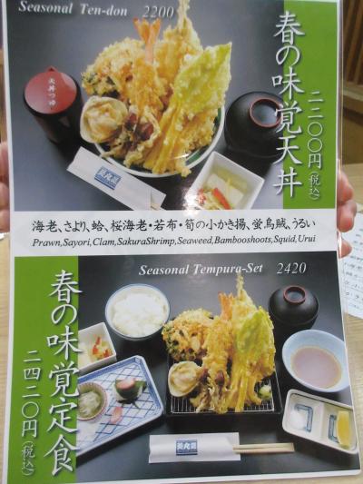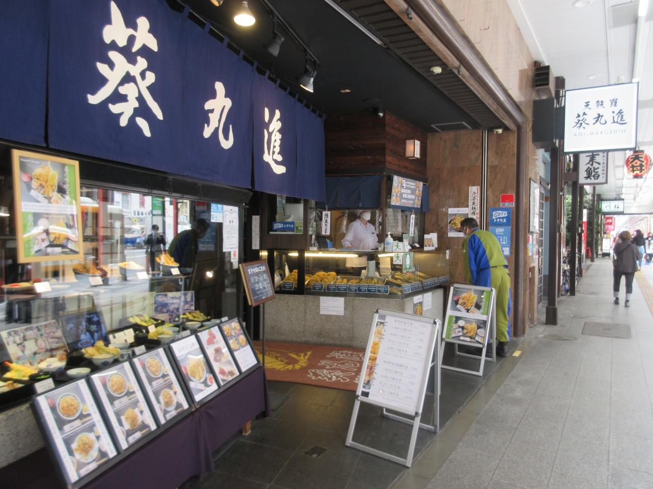雷門通りにある天ぷら専門店です。浅草を散策した際、天ぷらを購入して自宅で食べることがありました。今回は店内で食べようと初めて入りました。1階で受付して、エレベーターで指定された階に行きます。2階テーブル席に通されました。ビル全体が葵丸進で、座敷、個室、宴会場など用途に応じて使い分けできます。帆立小柱天丼、春の味覚天丼、ハマグリ酒蒸し、ハイボールを注文しました。帆立小柱天丼は小柱のかき揚げの他にかぼちゃがのっていました。春の味覚天丼に大きく厚みのあるふわふわのキス、海老、ホタルイカ2匹、貝付きのハマグリ、うるい、筍のぶつ切りと桜エビとわかめのかき揚げがのっていました。注文した妻は天ぷらの量にびっくりしていましたが、美味しいと完食しました。卓上で蒸すハマグリ酒蒸しは少し時間がかかったものの、熱々を美味しくいただきました。