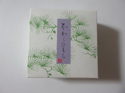 大丸京都店地下1階の和菓子店が集まったところにあります。京都の銘菓を見ていたら、老松の本わらびもちの表示にひかれました。帰宅後食べて、美味しかったら次回京都に来た時の土産の候補にしようと軽い気持ちで1個購入しました。京都にいる間、上七軒通で老松北野店の前を通りました。京都駅の土産物店でも本わらびもちを売っていました。缶に入っていて日持ちします。今まで食べたわらび餅と違い、弾力があり、スプーンですくって食べるものではなかったです。細かく切って、黒糖蜜ときな粉をかけました。弾力があるけれど舌触りの良いわらびもち、芳ばしい黒糖蜜、上品なきな粉でした。美味しかったので、わらびもちを食べた後に残った蜜をすくって食べました。弾力に驚いた本わらびもちでした。
