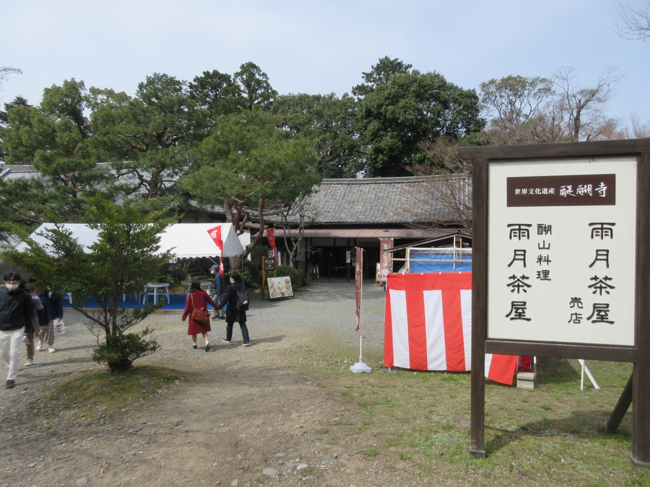 醍醐寺内の大型バス駐車場に面した食事処です。週末開店前に7、8人並んでいました。精進料理や一味膳などの醍醐寺の伝統料理から創られた醐山料理の他に蕎麦などもあります。店内は広く、座敷にテーブル席が並んでいます。オンライン予約もできます。並んでいた入口と売店の間に、閉まっていた玄関があり、奥に席があったようです。寺院の精進料理を味わうのも旅の楽しみです。今回は次の寺院巡りの予定があったので、利用しませんでしたが、次回参拝客の少ない時期に来て利用したいと思いました。
