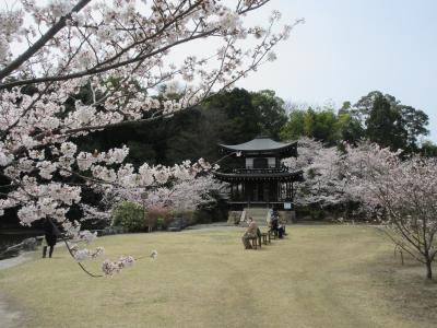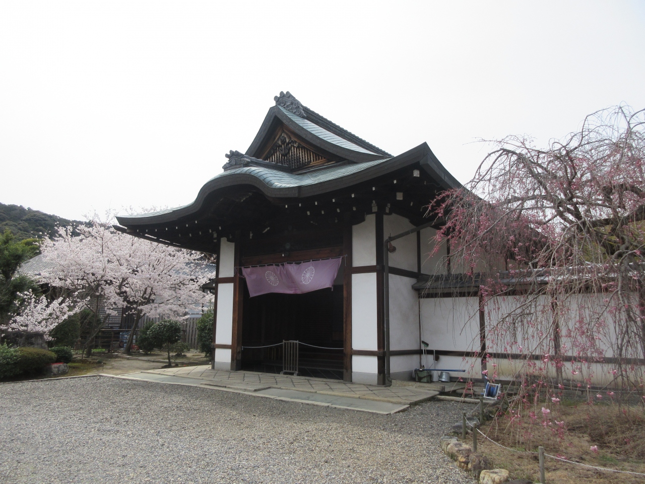 小野駅から西へ7分ほど歩いたところにある真言宗寺院です。桜を見に醍醐寺へ行った後、バスに乗り訪れました。900年に醍醐天皇が創建した寺です。バス通りから山門までの参道に若い桜やしだれ桜が咲いていました。代々法親王が入寺する門跡寺院として栄えました。1470年に兵火で焼失し、江戸時代に徳川家と皇室により再興され、天皇から賜った書院、宸殿、本堂があります。書院前にある水戸光圀寄進の灯籠と覆うようなハイビヤクシンは一見の価値があります。氷室の池を中心とした庭園は静かで芝生に石のベンチがありました。藤棚の支柱に自然観察用の双眼鏡が掛けてあることから自然を大切に保存していることがわかりました。醍醐寺の人混みで疲れたので、境内の静けさに癒されました。