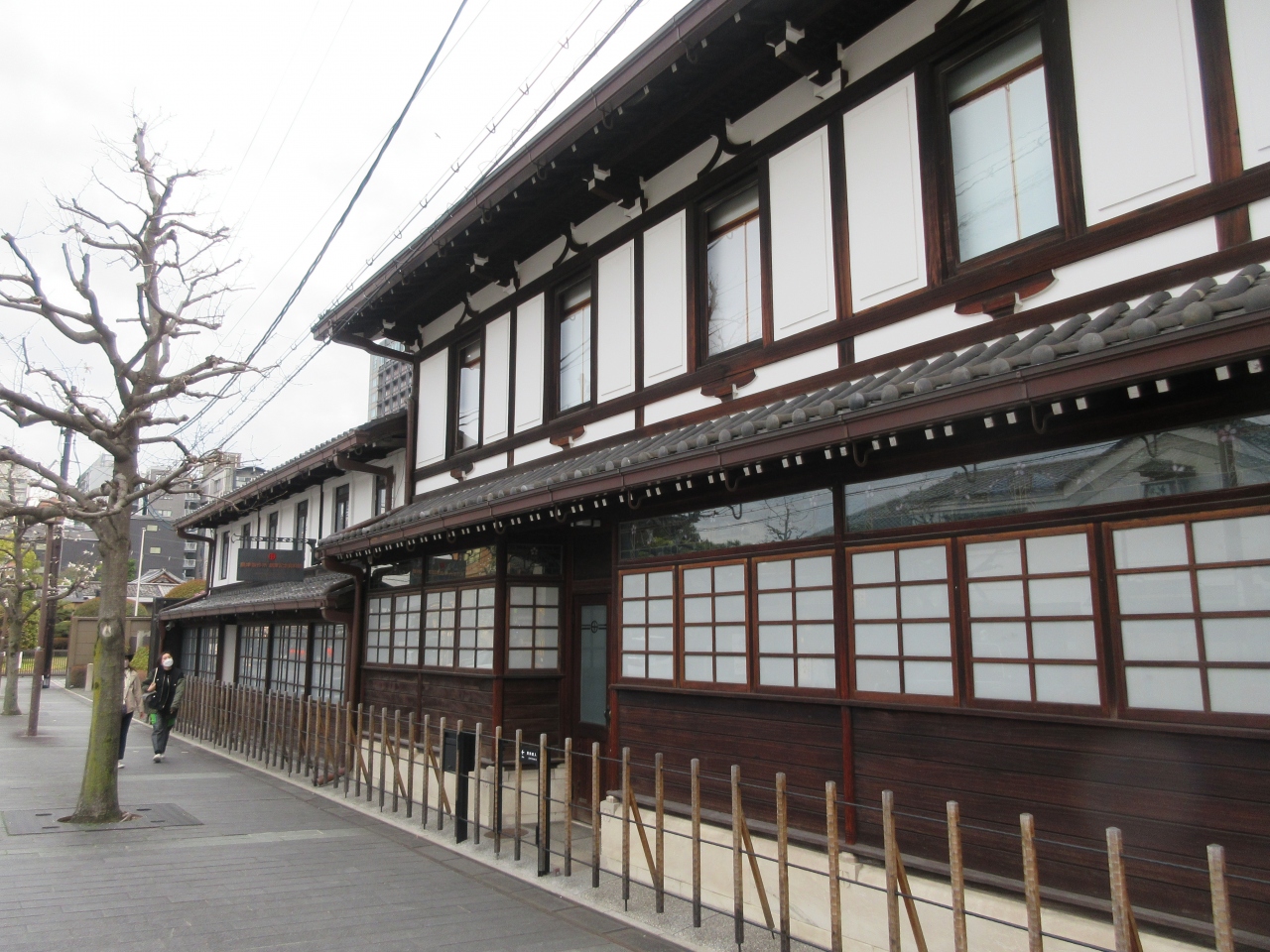 京都市役所前駅出口2から高瀬川を北へ数分歩いたところにある木造二階建ての建物です。訪れた時、コロナ禍で休館中でした。1階の窓の上に桜のステンドグラスがあり、明るさを感じました。1階の大きな窓と木壁、2階の窓と白壁が整然と並んでいるのが特徴です。後で調べると、島津製作所の創業100周年の1975年に初代と二代の島津源蔵の遺徳をしのんで開設したそうです。初代が居住し、45年間本館として使われてきた建物です。次回、展示物を見学したいと思います。