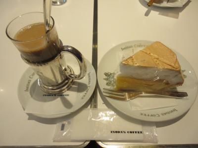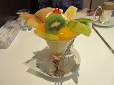 京都駅八条口1階のおもてなし小路にあるイノダコーヒーで休みました。缶詰のフルーツとフレッシュフルーツがのったフルーツパフェのバニラアイスクリームはシャリっとしていて美味しかったです。ケーキセットでホットカフェオレとレモンパイを注文しました。自分のイメージしているレモンパイはレモンカスタードが甘酸っぱいものでしたが、ここのレモンパイはレモン色だけで甘くて期待外れでした。