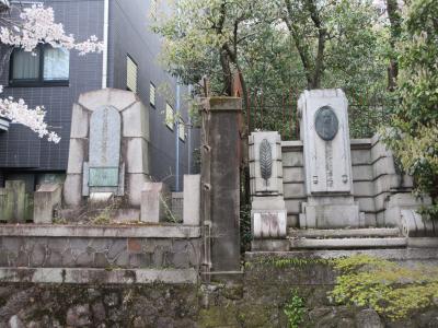 京都市役所前駅出口2近くの高瀬川の対岸の一画に2つの碑が建っています。共に近寄ることができない場所に建っています。1864年に刺客に襲われて絶命した佐久間象山の碑にレリーフがあり、後で調べると1915年に有志によって建立されたそうです。大村益次郎の碑に碑文が彫られていますが遠くて読めませんでした。幕末の兵学者大村益次郎は1869年に旅館で刺客に襲われ2か月後に亡くなったことが説明板に記されています。1934年に建立されました。激動の時代を生きた人たちの功績と理不尽な終わり方を考えさせられる碑です。
