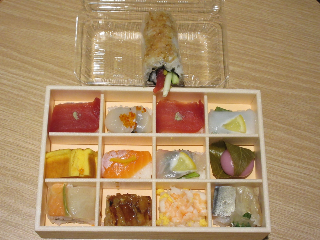 JR京都伊勢丹地下2階の食品売場に入っている、持ち帰り専門の寿司店です。京都に滞在中、ホテルの自室でゆっくり食事をしようと思い夕食を探していたところ、美味しそうだったので江戸前鮨とロールずしを購入しました。江戸前鮨はにぎりが小さめでしたが、食後のスイーツも入っていて気配りが感じられました。ロールずしはシャリが海苔を巻く形になっていて、ネタもたくさん入っていて満足感がありました。この店に限らず、デパ地下で食事を購入しホテルで食べるのも、のんびりできておすすめです。