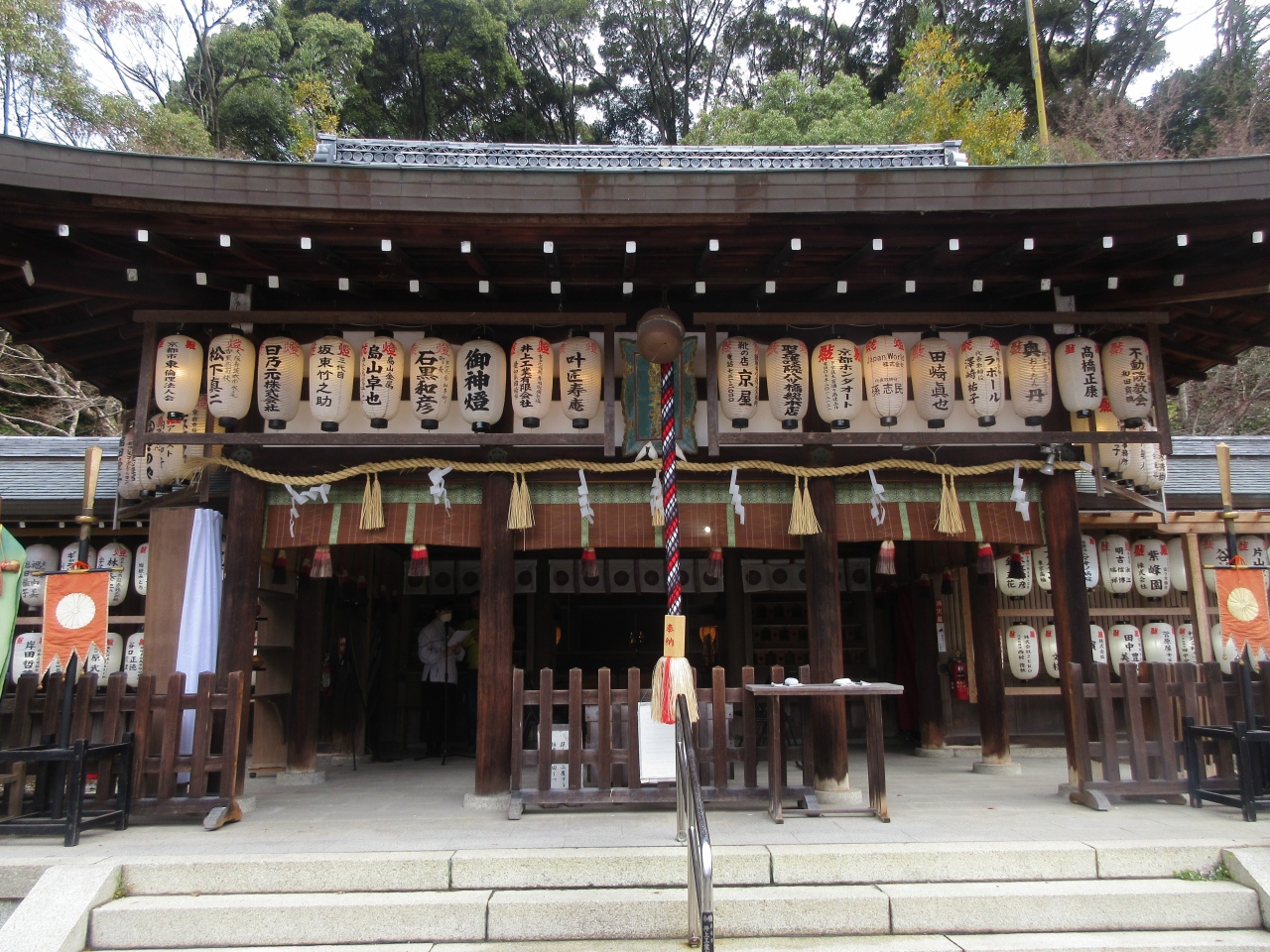 京都の桜の名所として知られる哲学の道入口(銀閣寺側と反対の入口)近くに建つ神社です。すぐそばに建つ紅葉の名所・永観堂の守護神を祀る神社で、豊臣秀吉によって再興された歴史があります。社殿手前には、右近の橘と左近の桜が植えられ、恵比寿神像も祀られています。絵馬には日本初代天皇・神武天皇の道案内をしたとされる八咫烏が描かれています。訪れた時は桜花祭の準備が行われていましたが、桜の木は若木が数本植えられているだけでした。今回は訪れませんでしたが、神社の奥には同志社大学創立者の新島襄先生の墓も建っているとのことです。神社に奉納された提灯の数から、現在も多くの方から信仰されている神社だと感じられました。哲学の道入口からすぐなので、時間がある方は訪れてみるのも面白いと思います。