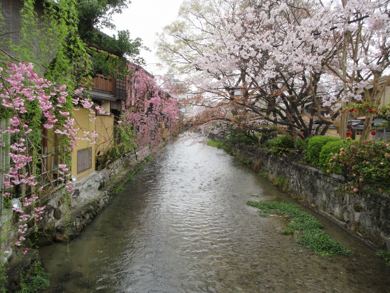 石畳が敷かれ、道沿いには桜や柳が植えられ、白川沿いに建つ格子戸の料亭やお茶屋など、京都でも最も京都らしさが感じられるエリアです。白川に架かる朱色の巽橋や、芸妓さんや舞妓さんが芸の上達を祈願しに訪れる辰巳大明神は、観光雑誌の表紙やポスターにしばしば登場しています。京都に桜満開宣言がでてから4日目に訪れたところ、一部散りかけていてそれほど感動的ではありませんでしたが、白川沿いの京都らしい景観に心が落ち着きました。
