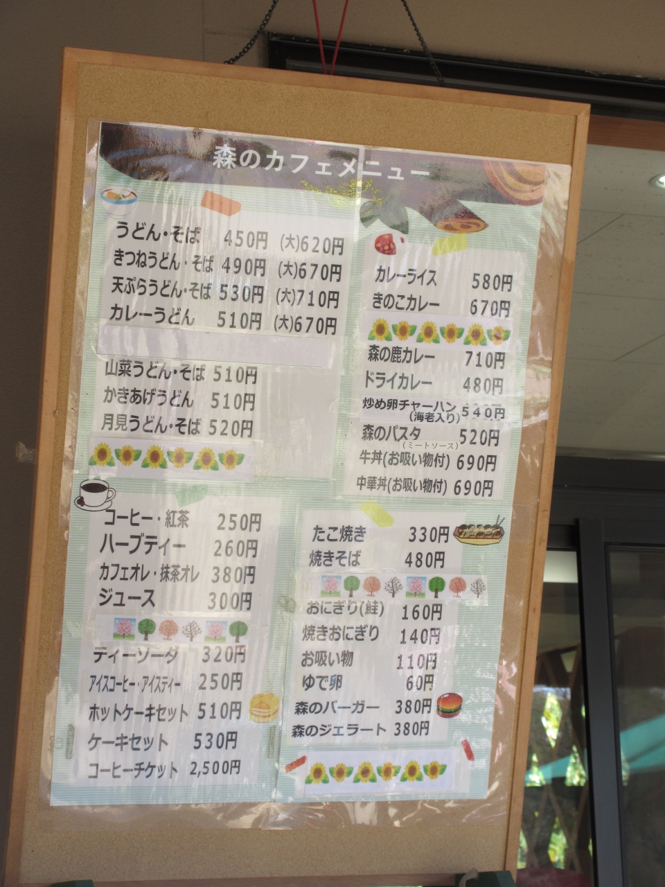 京都府立植物園内の中央にある飲食店です。うどん蕎麦各種、カレーやパスタなどがあります。券売機で支払い、カウンターで受け取り、店内や屋外のテーブル席で食事します。きつねうどんとドライカレーを食べました。関西風薄味のうどんとレンジで加熱したドライカレーでした。時間節約で軽く昼食をとりたかったので普通の食事で十分でした。平日でも桜の季節だったので昼は行列ができていました。