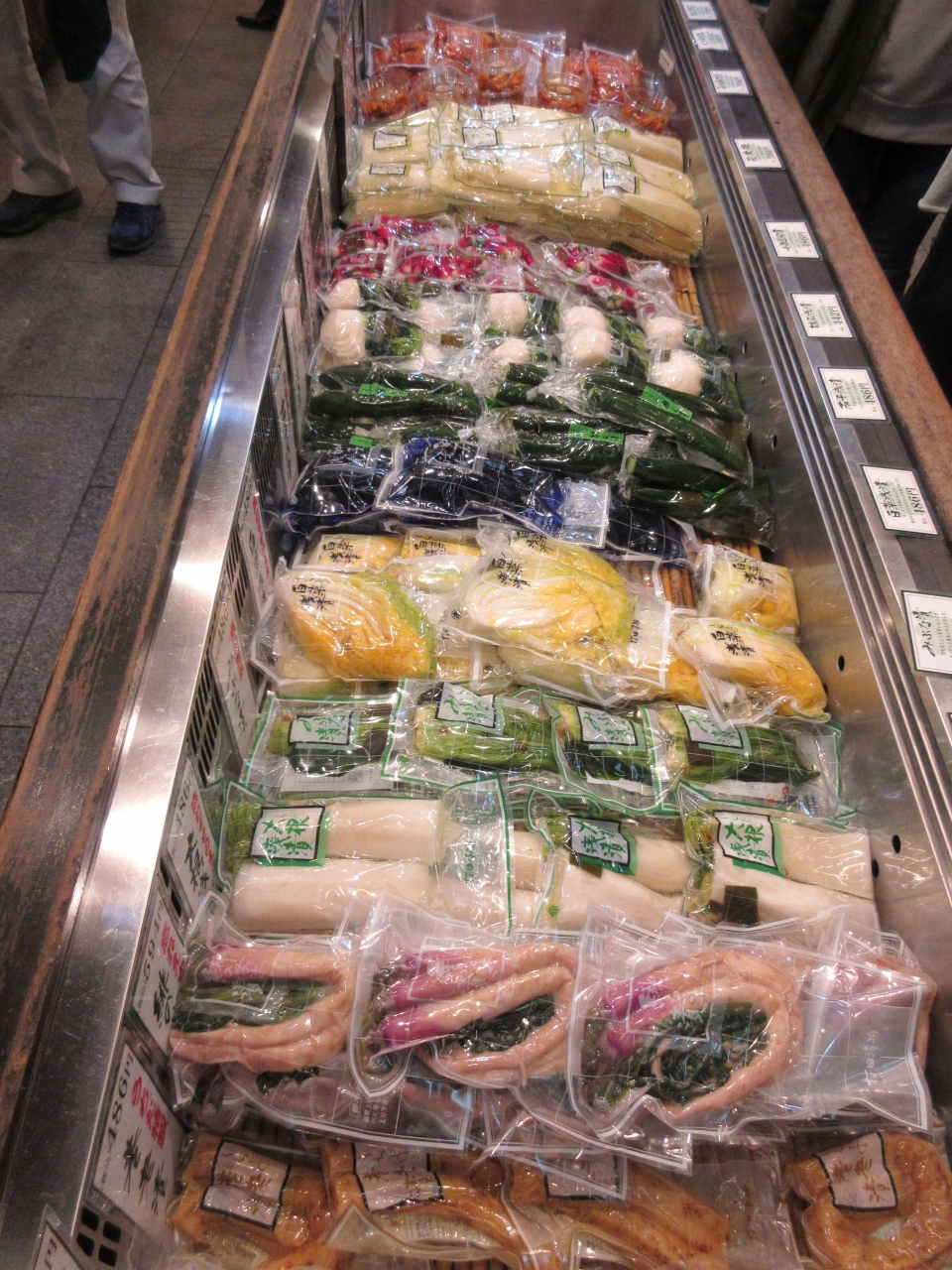 錦市場の西側にある錦小路店に行きました。京都に来た際に、必ず寄る店です。今回京都滞在の初日に訪れ、日時指定で受取日に合わせて、新鮮な漬物を送ってもらいました。店内で漬物を選び、宅配コーナーでスタッフとチェックしながら手続きをしました。欲しかったかぶ漬けは配送日には販売終了するということであきらめました。6種類送ってもらい、漬物三昧の嬉しい食事をしています。野菜の味を生かした漬物は味がそれぞれ異なり飽きません。