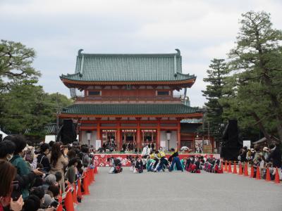 平安神宮内に造られた神苑で八重紅枝垂桜を観賞した帰り道に立ち寄りました。瓦屋根の、入口に唐破風が造られた堂々とした建物です。本館隣に建つ旧武徳殿は、日本最古の演舞場との説明が書かれていました。センターの前を通りかかった時に、本館から活気ある大きな声が聞こえてきたので覗いたところ、京都女性剣道大会が開かれていました。剣道の一本は未経験者にはよくわかりませんが、足を踏み込む音と竹刀がぶつかり合う音がとても神聖に聞こえました。