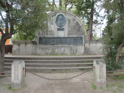 岡崎公園内に建つ京都府図書館の入口前に、肖像プレートがはめ込まれた半円形の大きな碑が建っています。京都府立医科大学や東京大学、東京工業大学などで教鞭をとり、陶磁器やガラスの製造を指導、日本の工学教育に大きな功績を残された方で、日本を代表する多くの人材を育てたとのことです。知人が勤める東工大の博物館に博士の展示があり、青山霊園に博士が眠っているとのことなので、機会を見つけ訪れたいと思います。