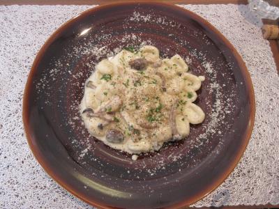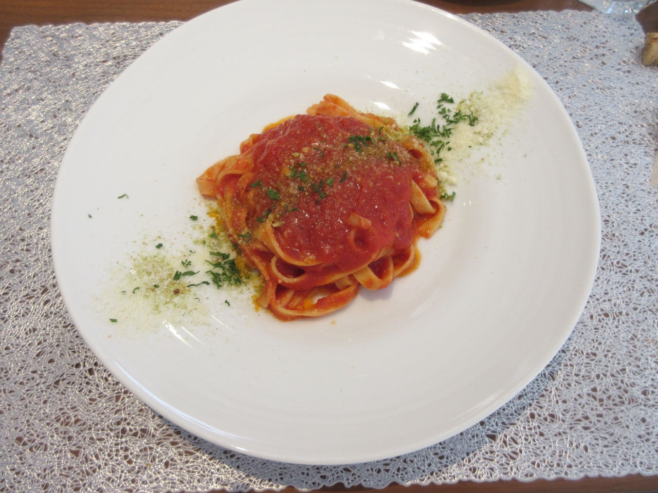 平日春秋苑に墓参りした後、昼食に寄りました。生田駅南口から徒歩6分、春秋園へ行く道路の途中にあります。専用駐車場が店の前にあったので車を停めて、1時過ぎに三人で利用しました。前菜の盛り合わせ2つ、ポモドーロ、ゴルゴンゾーラチーズときのこのオレキエッテ、富山湾産白エビと九条ネギのタリオリーニを注文しました。生ハムときのこのマリネ、カポナータ、鶏ハムのサラダ、リエット、ゴボウのポタージュなど7種類が大皿に盛り付けられた前菜はどれも美味しくて、運転してなければワインを飲みたくなる品でした。トマトソースが絡む平らなパスタのポモドーロ、大きめの白エビが目立つあっさりしたタリオリーニ、チーズの味とかわいいパスタのオレキエッテ、どれも美味しかったです。パスタに詳しくない自分でも色々なパスタを楽しめました。手打ちのパスタの美味しさが味わえる店です。