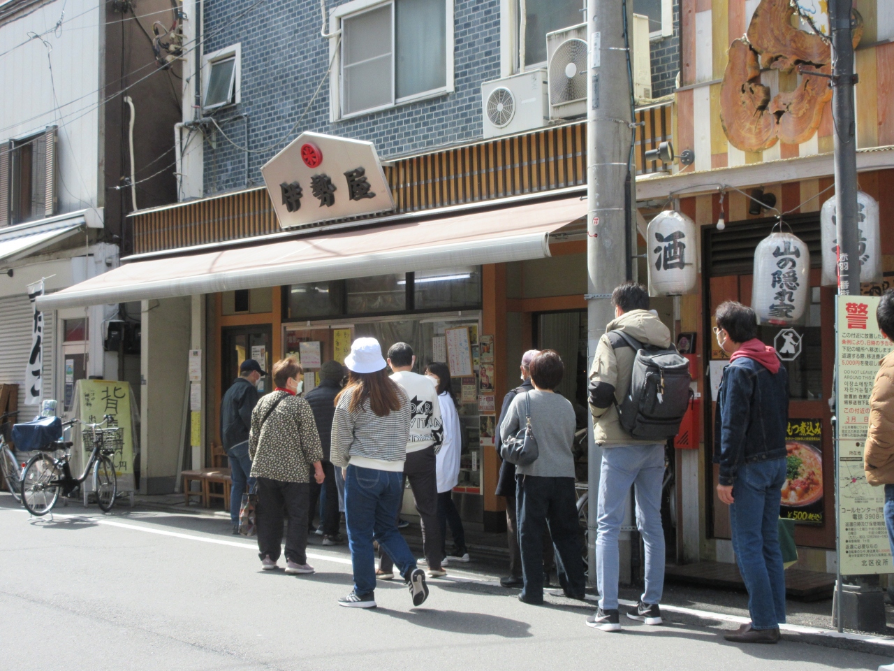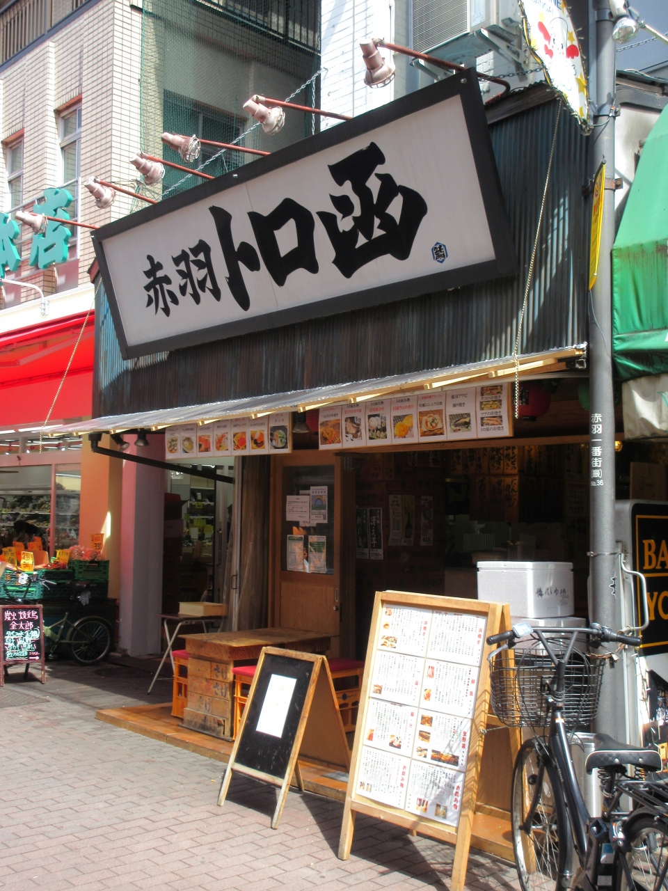 赤羽駅東口から3分ほど、赤羽一番街の飲み屋が集まる一画に建つ居酒屋です。昭和25年創業という老舗中の老舗で、コの字形のカウンター席がメインの1階では、午前中からアルコールと鯉のあらいや鰻のかぶと焼など100種類以上のつまみが味わえます。まん延防止等重点措置の期間中は店を閉め、店頭でウナギのかば焼きを販売しているだけでしたが、重点措置が解除になった日から、開店とともに多くのお客さんが来店し、重点措置前の賑わいが感じられました。飲んべえの街・赤羽を象徴する店の一つです。