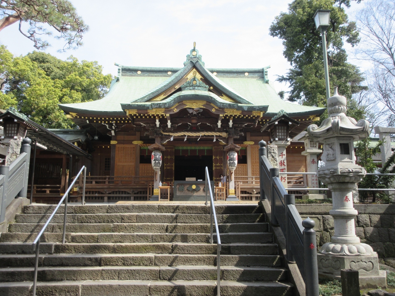 足立区内に建つ、酉の市発祥と伝わる歴史ある神社です。150mはあると思われる参道には、3基の鳥居が建ち、参道沿いにはイチョウやクスノキ、ムクノキ、ケヤキ、黒松などの大木が50本以上植えられ、厳かな雰囲気が感じられます。神苑には池が造られ、池の周りに植えられた枝垂れ桜やボケ、雪やなぎなどには花や花芽がつき、春の到来を待っていました。唐破風造りの本殿には昇り龍と降り龍の彫刻が飾られ、拝殿から見るだけでもその素晴らしさが実感できました。平日に訪れたため参拝する人は少なかったですが、祭りやイベントが行われるときは大変な賑わいになるとのことです。