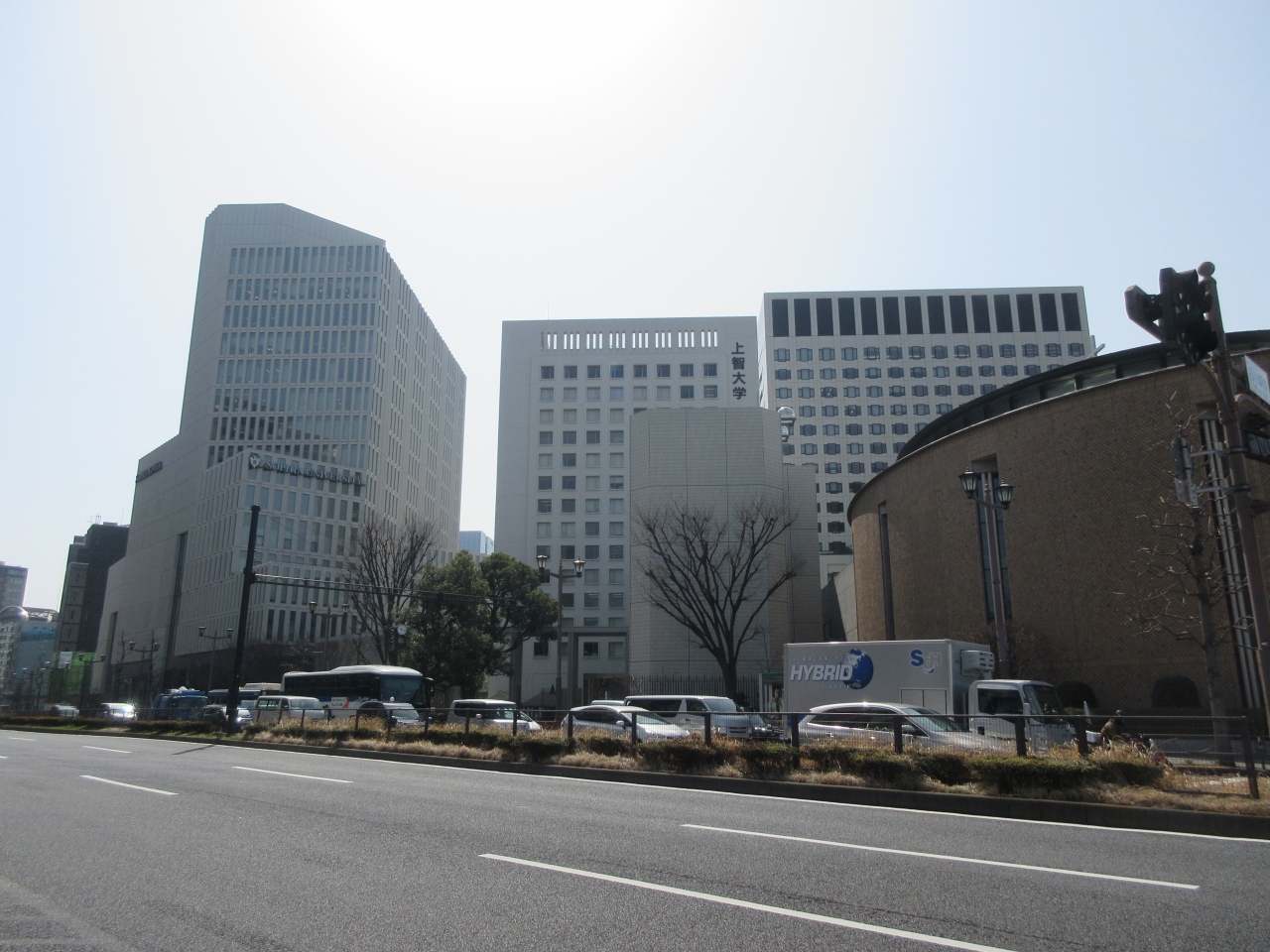 JR四ツ谷駅麹町口向かいに建つ、日本で唯一のカトリック神学部を持ち、外国語学部は関東では最難関ともいえる大学です。校内には聖イグナチオ教会があり、日曜日に行われるミサは英語、スペイン語、ベトナム語、インドネシア語、ポーランド語、ポルトガル語で行われます。大学の向かいには桜並木が美しい土手があり、桜の季節は多くの人の散歩コースになっています。
