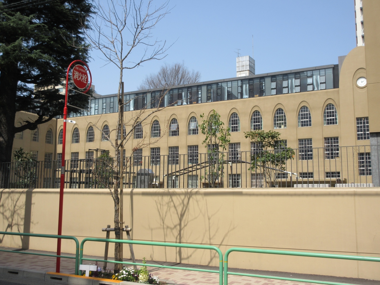 都営新宿線・市ヶ谷駅A3出口から300mほど、東郷元帥記念公園の隣に建っています。1903年に建てられた歴史ある小学校で、4年ほど前に新校舎が竣工しました。窓がアーチ形をしていたり、4階部分がガラス張りだったり、かつての校舎の外観を継承しつつ、近代的な施設が整った学校です。校舎内には東郷元帥が使用していた洗面台も残っているようですが、学校関係者でないため見学できませんでした。